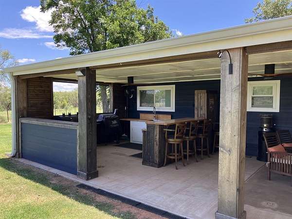 Immaculate, move in ready farm and ranch house on two acres with five outbuildings, a greenhouse, chicken coop, covered dog kennel, and a livestock pen and covered shed. This place has natural gas, coop electricity, rural water, a water well, and upgraded electricity for RV hookups. Inside the home you will find updated flooring, painted walls, HVAC system, and two water heaters. The exterior sports a new roof, siding, rain gutters and an amazing back patio featuring plumbing, electricity and ceiling fans. There are two septic systems which have never presented any issues. The shop includes electricity, running water, air conditioning and heating. A water well is available for the yard and all outbuildings. Nine mature pecan trees are scattered across the back of the yard providing tons of shade and pecans. This property has been perfectly maintained and cared for. Take advantage of country living with all the conveniences of town.