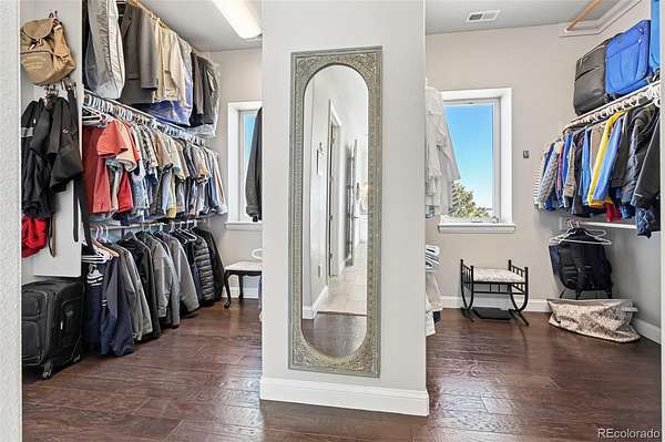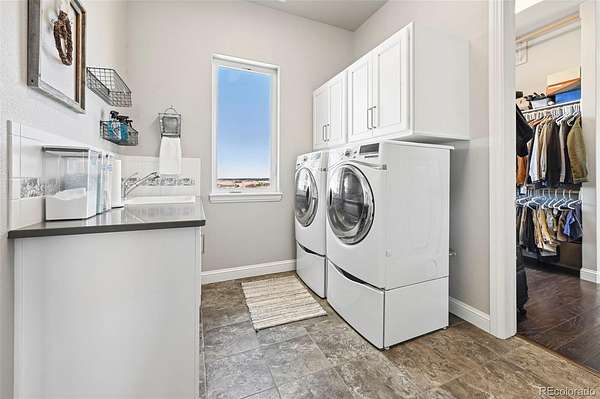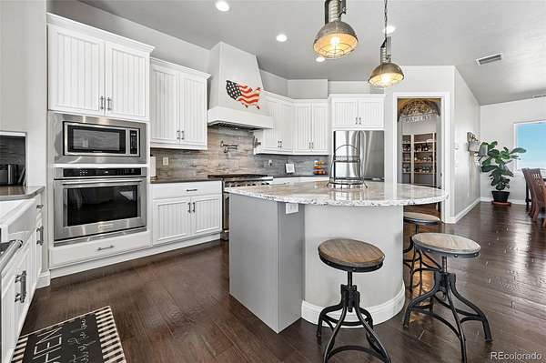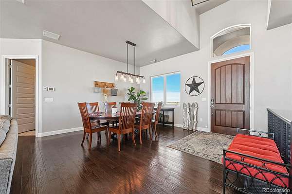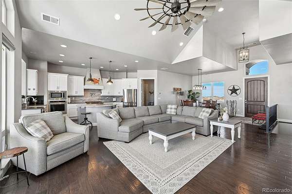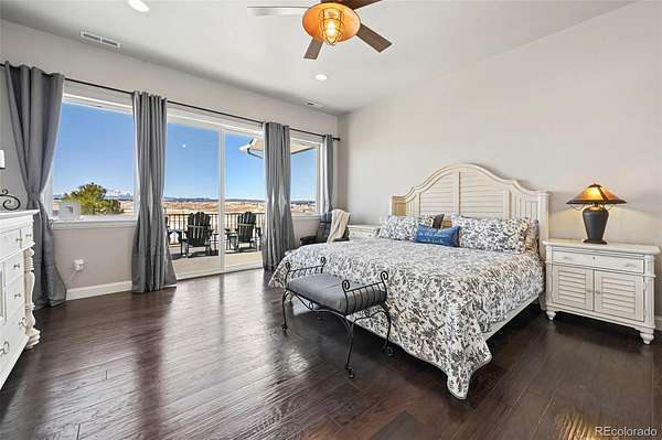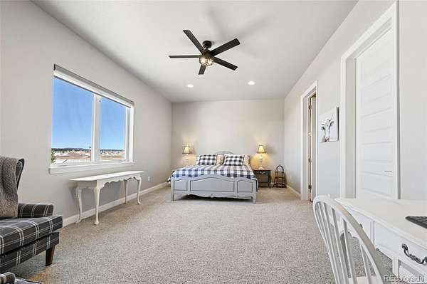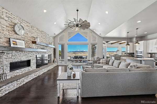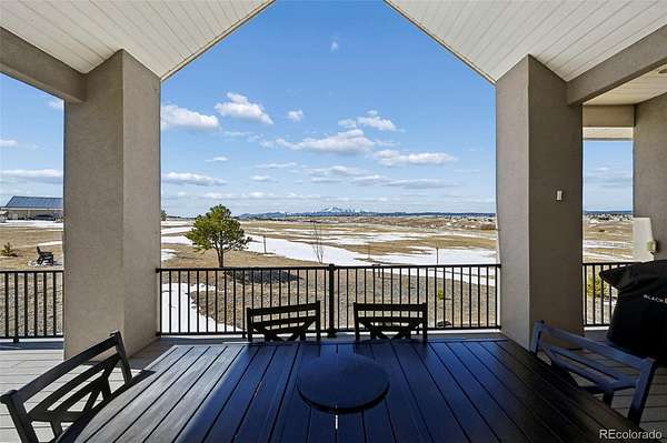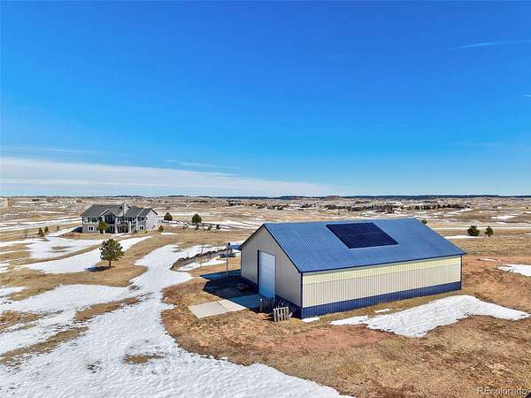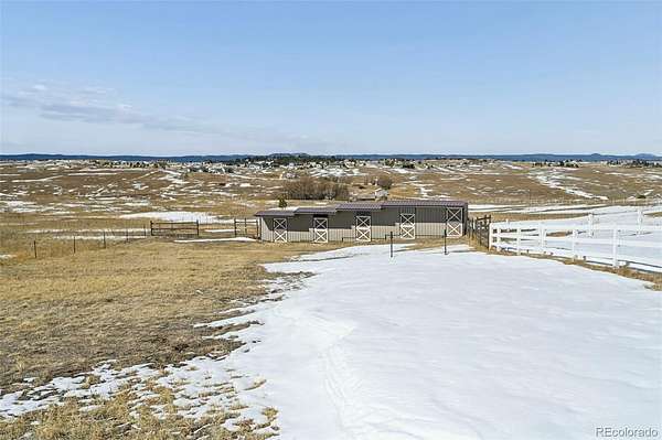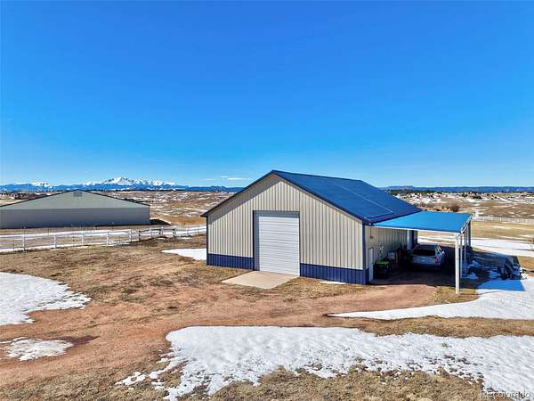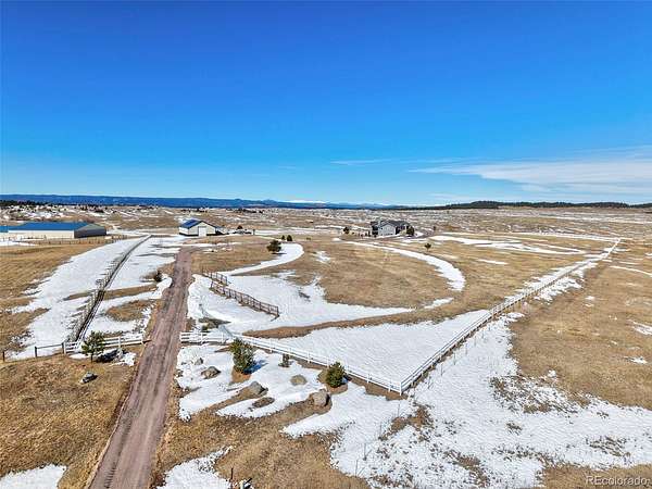 Beautiful 5-bedroom, 7-bath custom ranch estate set on 36 acres with breathtaking 360° views, including stunning views of Pikes Peak. This exceptional property offers the perfect blend of luxury living and equestrian functionality. The main level features hand-scraped wood floors, an open floor plan, and a spacious family room with a gas fireplace. The gourmet kitchen includes granite countertops, stainless steel appliances, ample cabinetry, and a large walk-in pantry. A spectacular sunroom with 180° views and wet bar/coffee bar walks out to a partially covered composite deck with metal railing—perfect for enjoying Colorado sunsets. The primary suite offers private deck access, beautiful Pikes Peak views, hand-scraped wood floors, and a spa-style bath with dual vanities, soaking tub, walk-in shower, and large walk-in closet with attached laundry. The walk-out basement level features high ceilings, a wood-burning fireplace, wet bar, private playroom, additional laundry, and three bedrooms—each with its own three-quarter bath, walk-in shower, and walk-in closet. Outside you’ll find a large barn with horse stalls, tack room, pass-through doors, and additional overhead access. The top portion of the property is enclosed with vinyl fencing, ideal for horses or livestock. Paid-off solar panels power both the home and barn. A rare opportunity to own a private Colorado ranch estate with panoramic views, luxury finishes, and outstanding equestrian amenities. Located close to Highway 105 with access to the highly regarded Monument Academy Charter Schools serving elementary through high school.