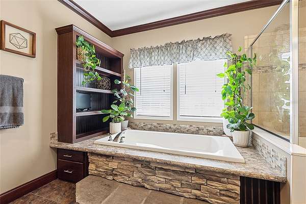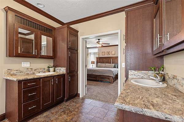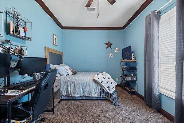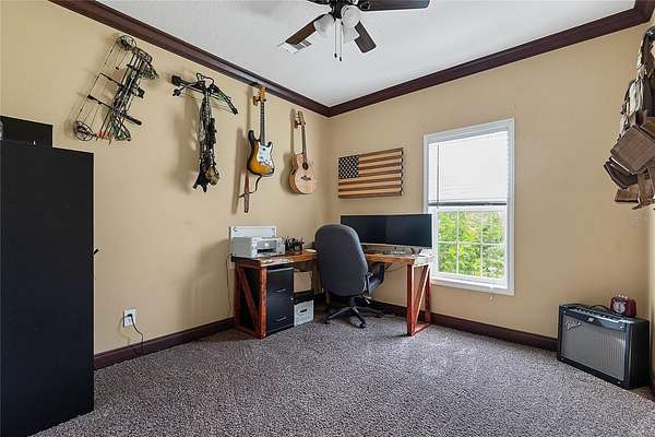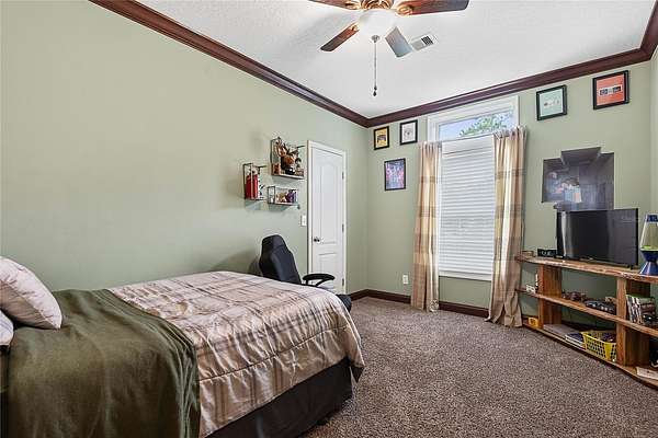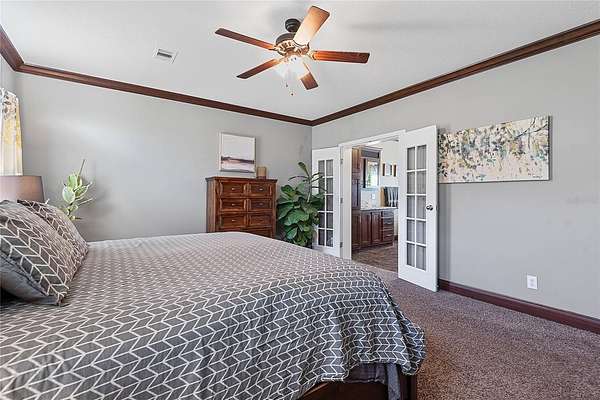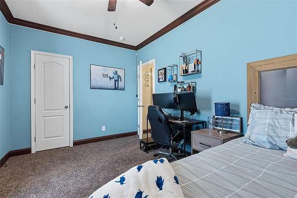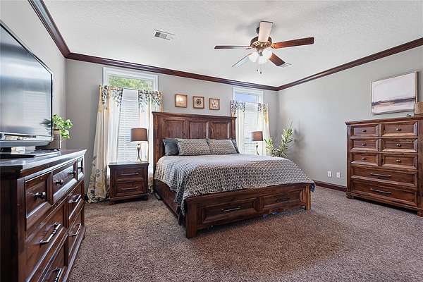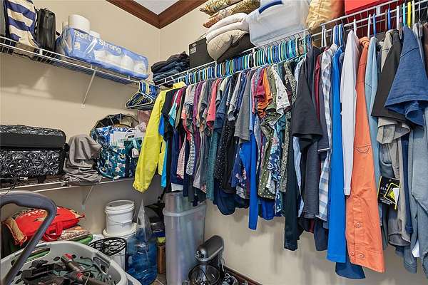 - Ceiling Fans(s), Coffered Ceiling(s), Crown Molding, High Ceilings, Primary Bedroom Main Floor, Solid Surface Counters, Split Bedroom, Walk-In Closet(s)