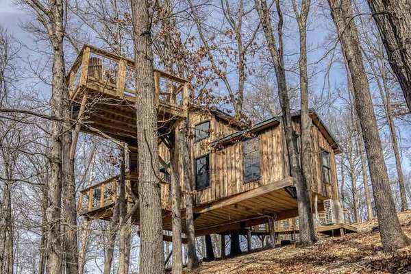 From Branson, take 65 North to Hwy 160 West. Turn left onto MO-13 S/248 W. Turn right onto MO-76 West. In roughly 6 miles, the home will be on the right. Treehouse has a gated entrance, must have agent present to access property.