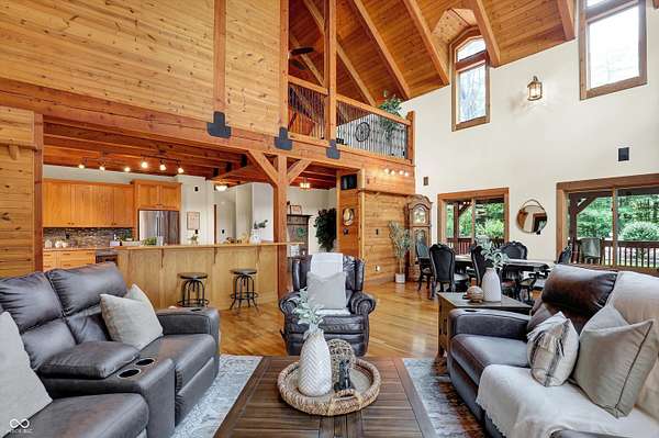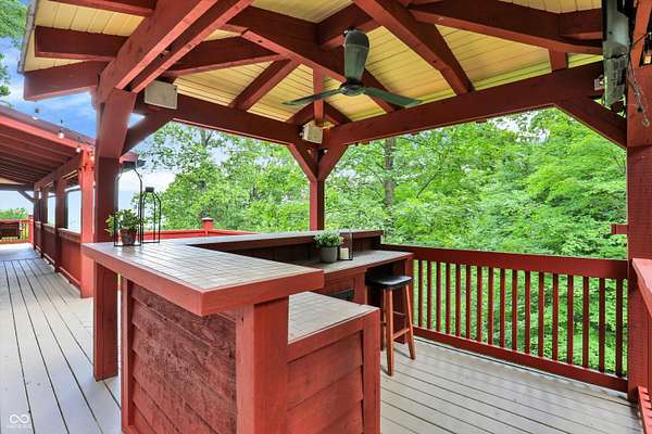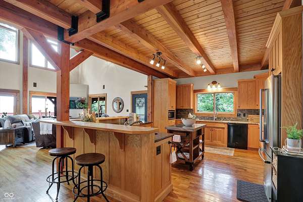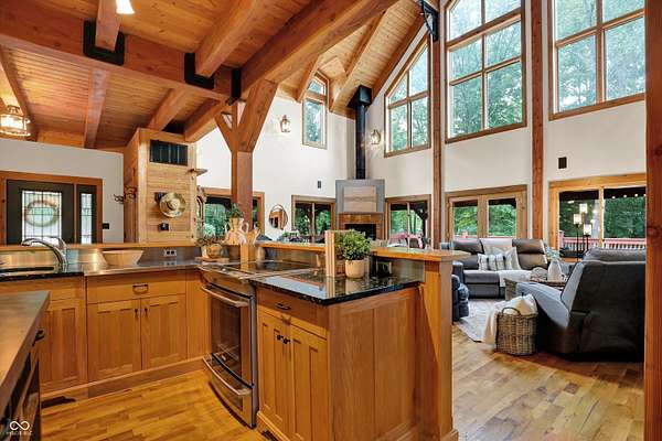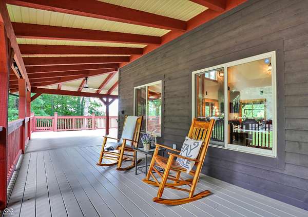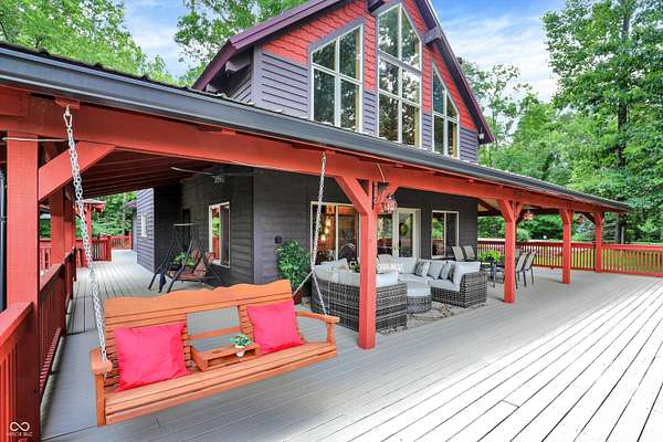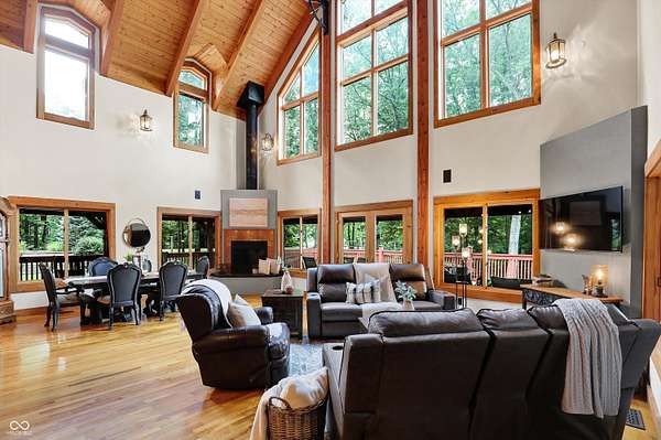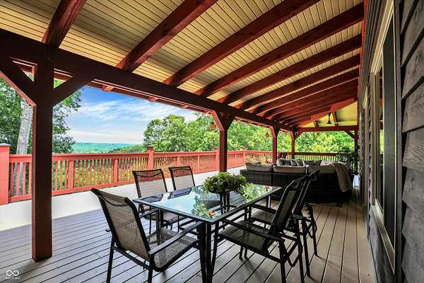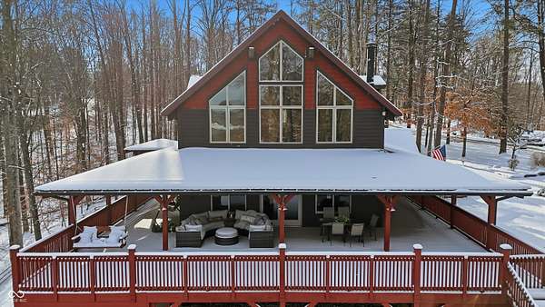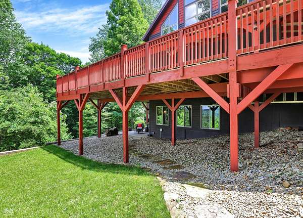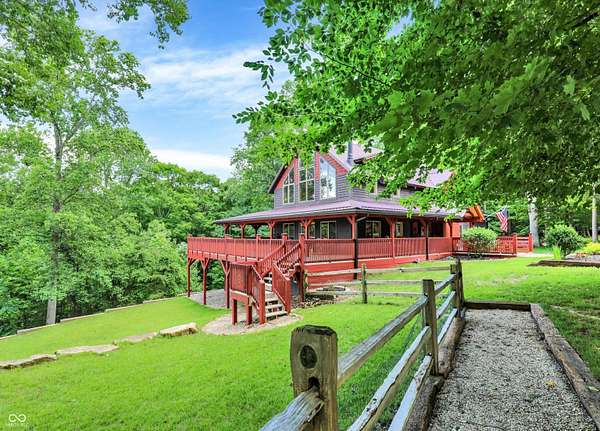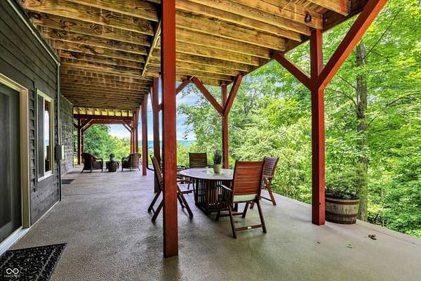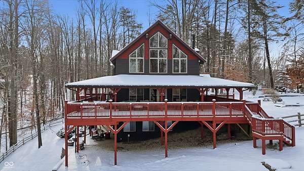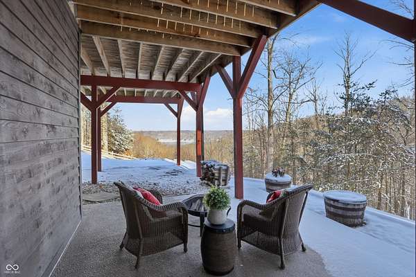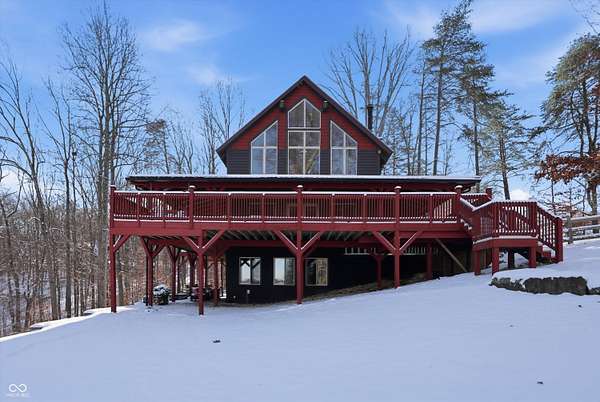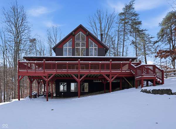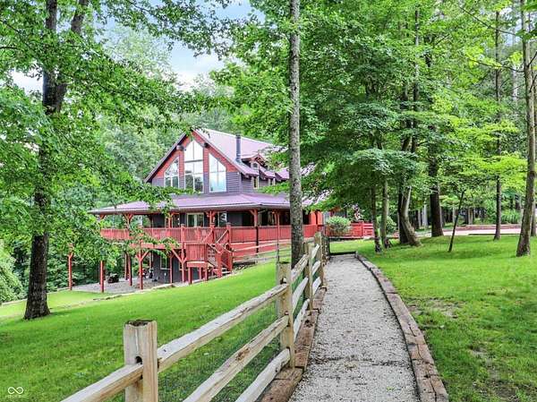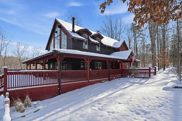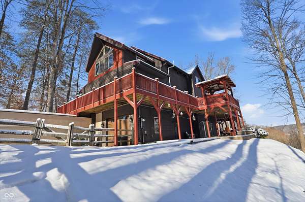 Welcome home to this AMAZING Upscale, Rustic home sitting on over 5 acres with breathtaking views overlooking Lake Lemon and the treetops below! This is the home you have been looking for! Pathways is a beautiful Retreat living with private peaceful surroundings, offers easy access to nearby activities at Lake Lemon, Yellowwood State Forest, Riddle Point Park & Beach, Lake Lemon Marina, Boating, Camping, Hunting, Tulip Trace Nature Trail, Scenic Overlook, Hiking & Fishing! Just 20 Minutes from Brown County & Bloomington! This One of Kind Home offer 4800 Square feet of Finished Living space w/Oversized garage that offers a Large storage area. This Quality Timber Framed home features a 2 Story Great Room w/Amazing Views, Gourmet Kitchen w/high end appliances, spacing Dining area w/wood burning fireplace, Gorgeous Red Oak hardwood floors, Large Main Floor Primary Suite w/sitting area, Private Spa Bath that offers a custom walk-in shower and separate Soaking Tub, Double sinks & walk-in closet! Check out the upstairs Loft/Office space with Lake Views, 2 spacious bedrooms plus a Large Bonus rm. Entertaining space??... We have it... you will not want to miss the walk-out lower level that offers a Large Billiards Game rm, Custom bar, w/wine coolers, Spacious Family Rm, 4th bedroom and full bath! You will absolutely LOVE the outdoor space that offers over 3000 sq feet of outdoor covered wrap around porch/patio space with breathtaking views. Hang out and watch the game at the Outdoor bar area and do not forget the path to your Large outdoor Fire pit sitting area! This is your chance! Ready set GO!!