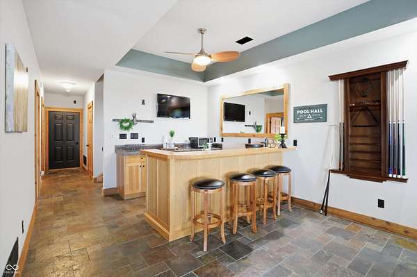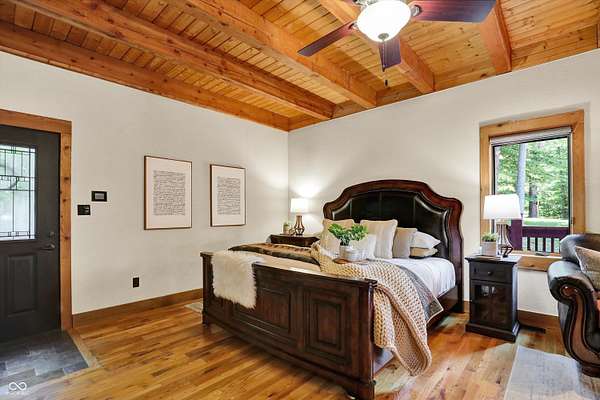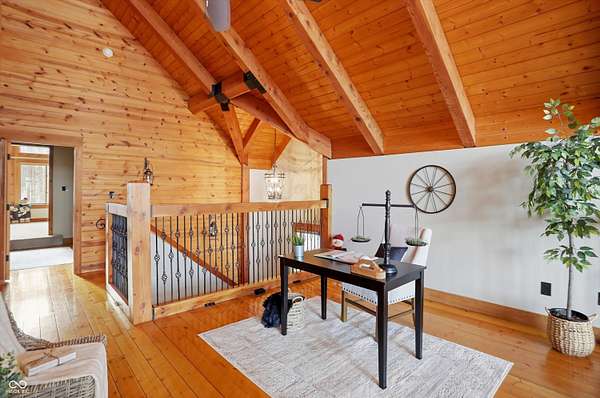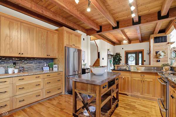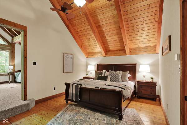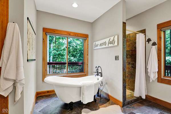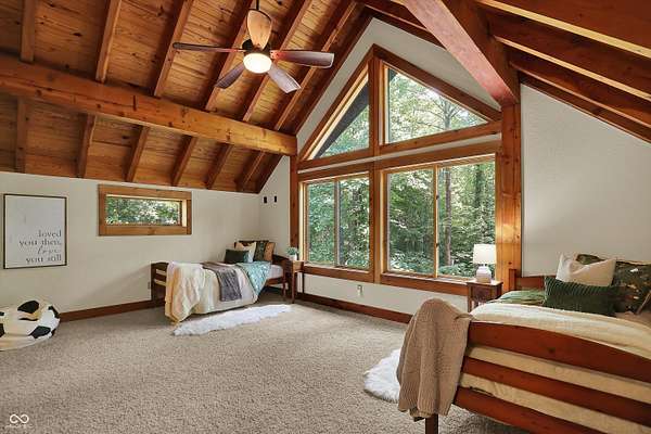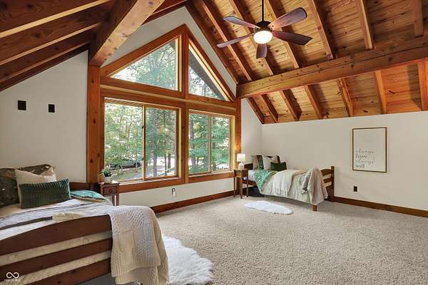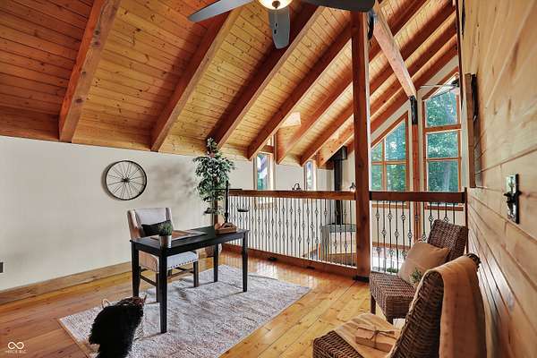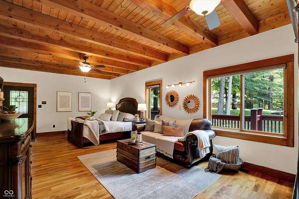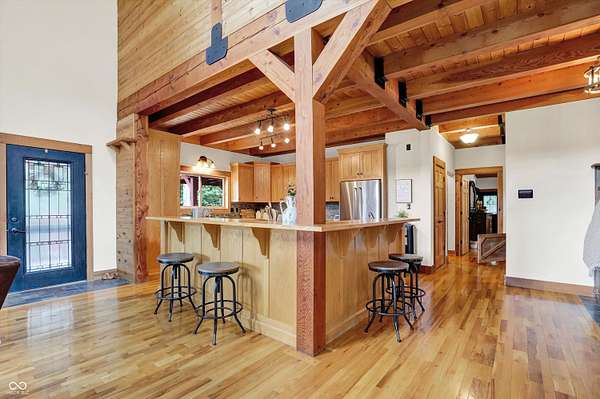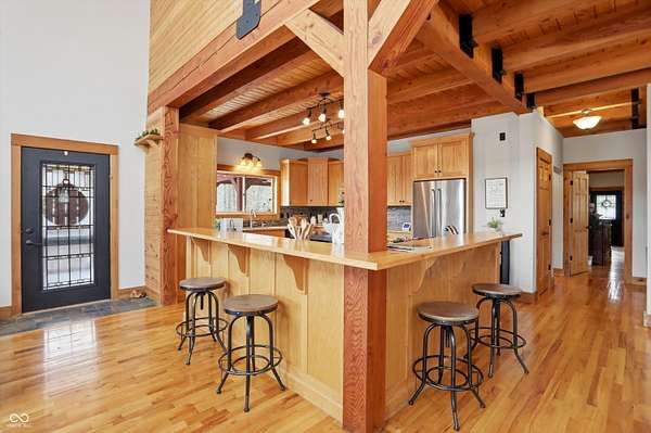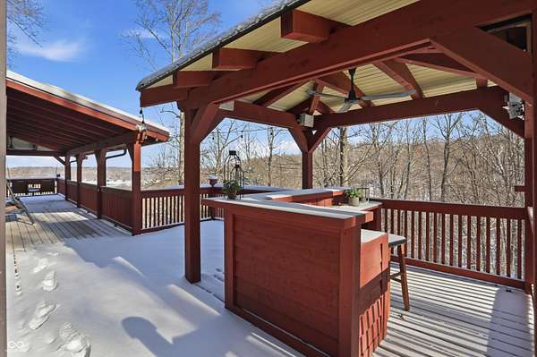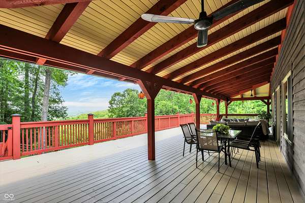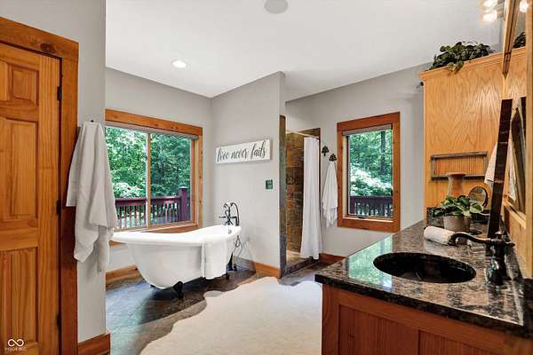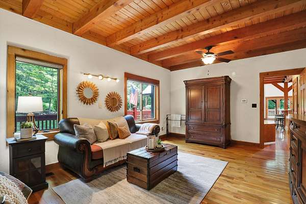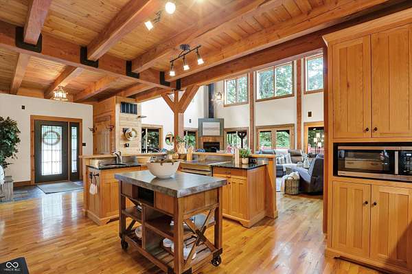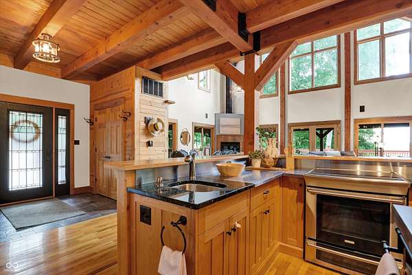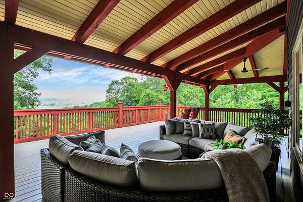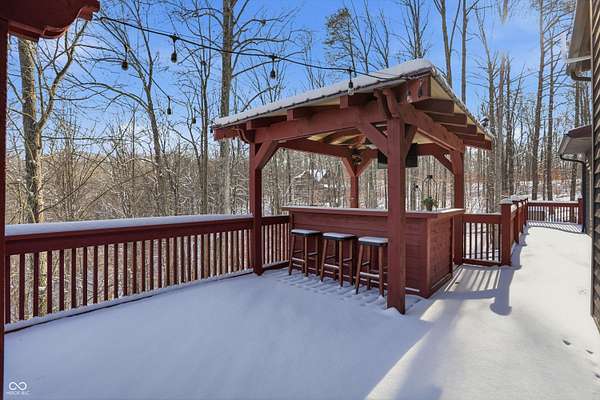 Welcome home to this AMAZING Upscale, Rustic home sitting on over 5 acres with breathtaking views overlooking Lake Lemon and the treetops below! This is the home you have been looking for! Pathways is a beautiful Retreat living with private peaceful surroundings, offers easy access to nearby activities at Lake Lemon, Yellowwood State Forest, Riddle Point Park & Beach, Lake Lemon Marina, Boating, Camping, Hunting, Tulip Trace Nature Trail, Scenic Overlook, Hiking & Fishing! Just 20 Minutes from Brown County & Bloomington! This One of Kind Home offer 4800 Square feet of Finished Living space w/Oversized garage that offers a Large storage area. This Quality Timber Framed home features a 2 Story Great Room w/Amazing Views, Gourmet Kitchen w/high end appliances, spacing Dining area w/wood burning fireplace, Gorgeous Red Oak hardwood floors, Large Main Floor Primary Suite w/sitting area, Private Spa Bath that offers a custom walk-in shower and separate Soaking Tub, Double sinks & walk-in closet! Check out the upstairs Loft/Office space with Lake Views, 2 spacious bedrooms plus a Large Bonus rm. Entertaining space??... We have it... you will not want to miss the walk-out lower level that offers a Large Billiards Game rm, Custom bar, w/wine coolers, Spacious Family Rm, 4th bedroom and full bath! You will absolutely LOVE the outdoor space that offers over 3000 sq feet of outdoor covered wrap around porch/patio space with breathtaking views. Hang out and watch the game at the Outdoor bar area and do not forget the path to your Large outdoor Fire pit sitting area! This is your chance! Ready set GO!!