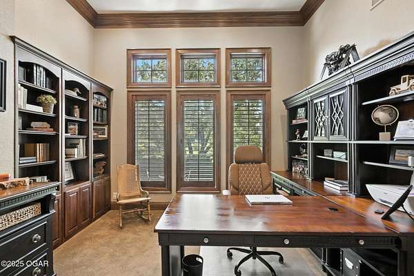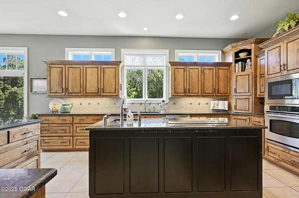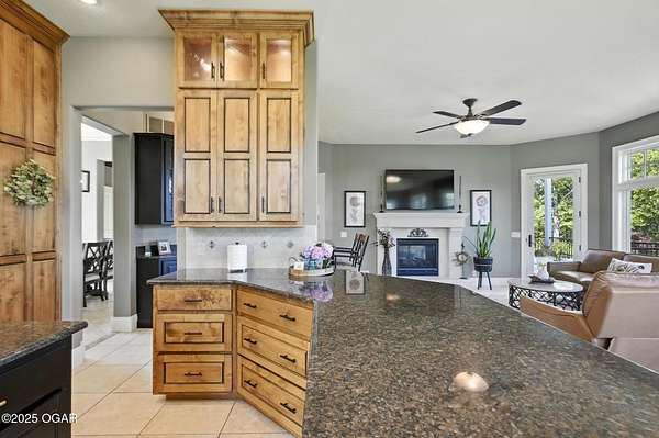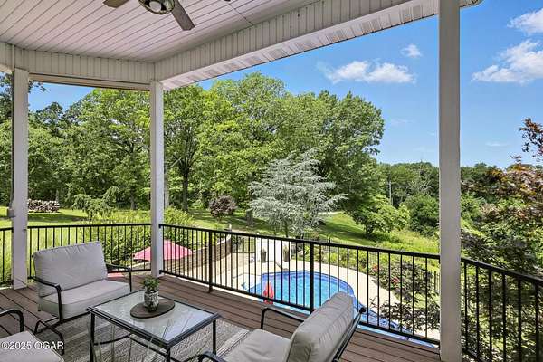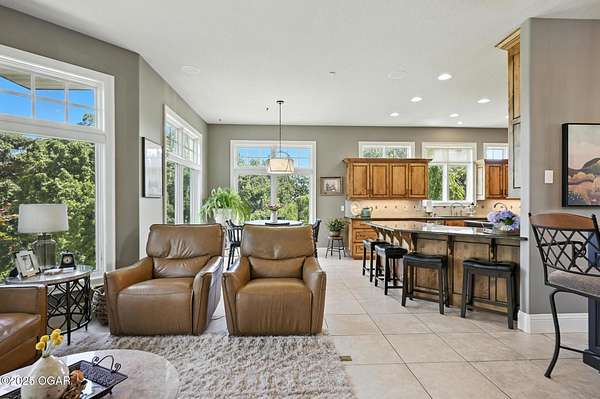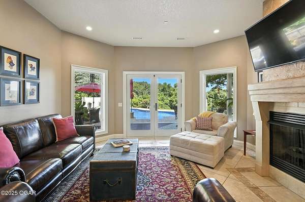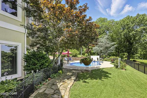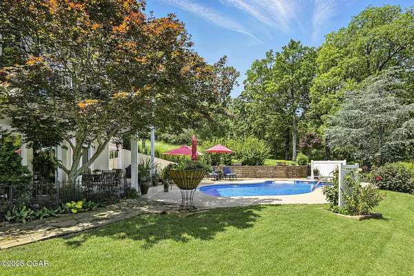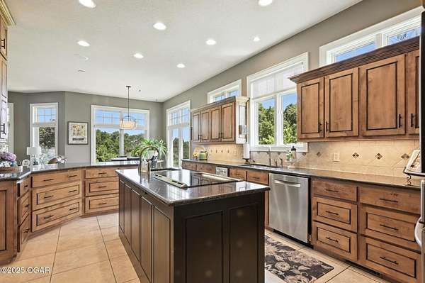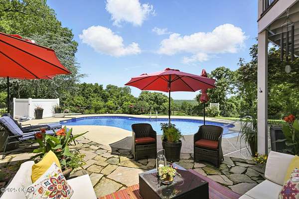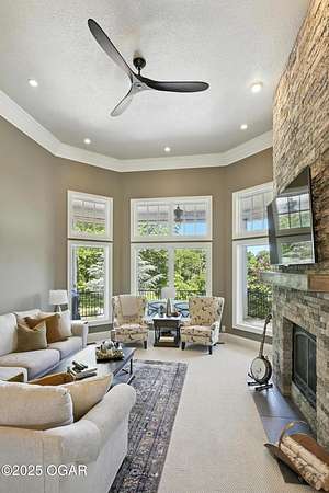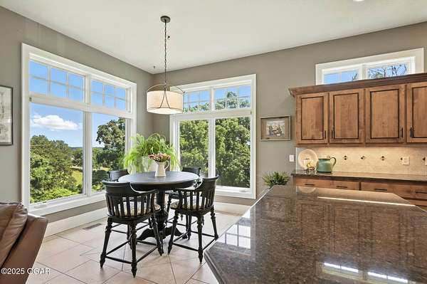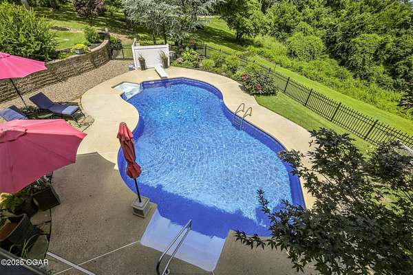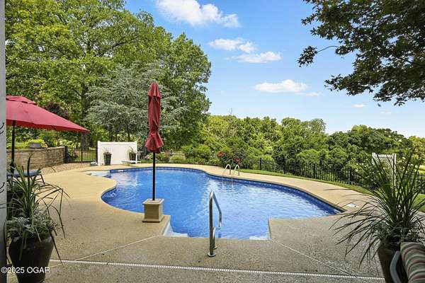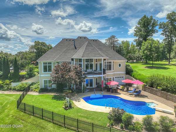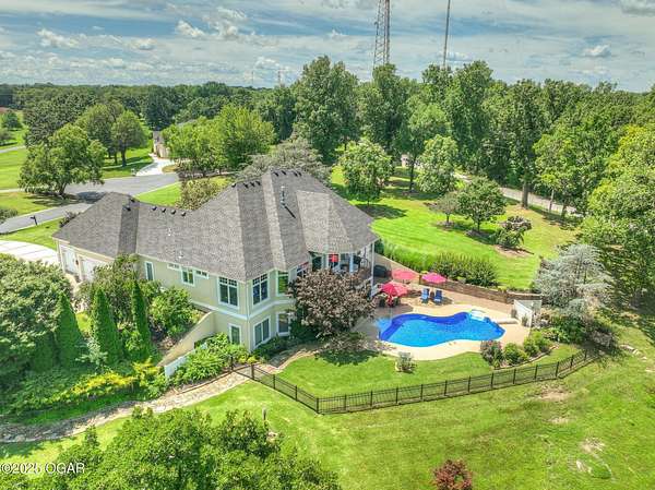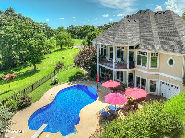 Experience breathtaking views and abundant natural light in this stunning home nestled in a private subdivision. This exceptional property features four spacious bedrooms plus a beautifully appointed office with built-ins, all thoughtfully designed for comfort and elegance. The main living room offers panoramic views, while a cozy hearth room opens to a breakfast area and a chef's kitchen with extensive counter space and storage galore. The expansive primary suite provides a peaceful retreat, and the walkout basement includes three additional bedrooms, a second kitchen area, a family room, and a wine/humidor room. Additional highlights include a heated pool, garden area, cedar closet, massive throughout, an oversized 3-car garage, and a separate John Deere room. With its resort-style feel and thoughtful layout, this home is truly a must see to appreciate its unique charm and functionality.