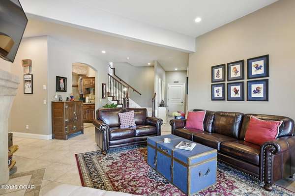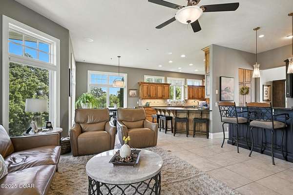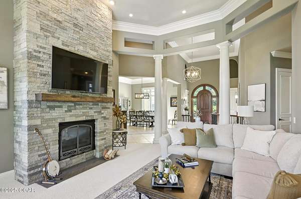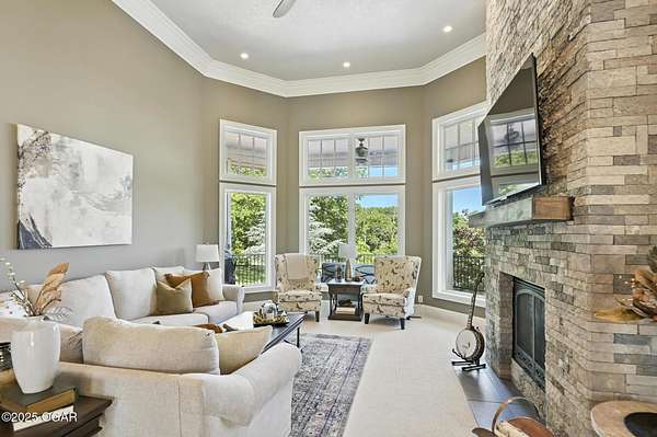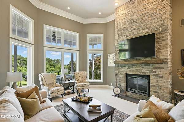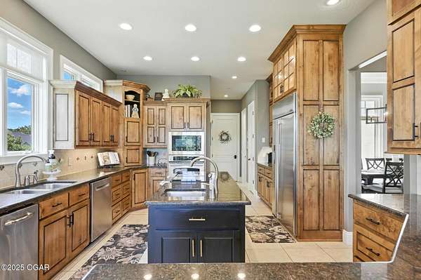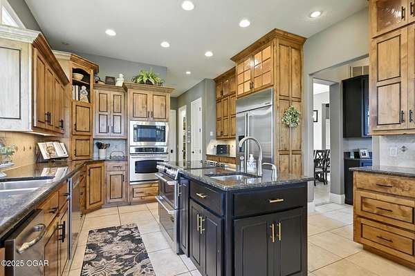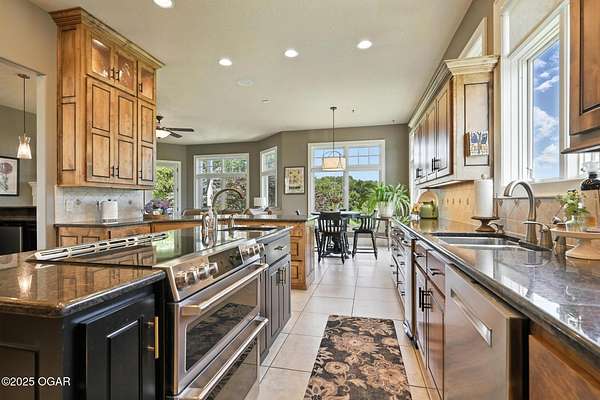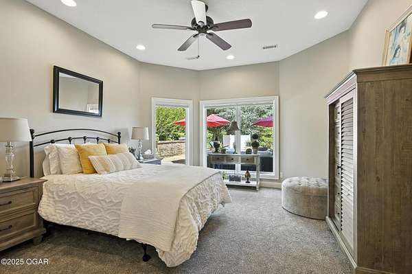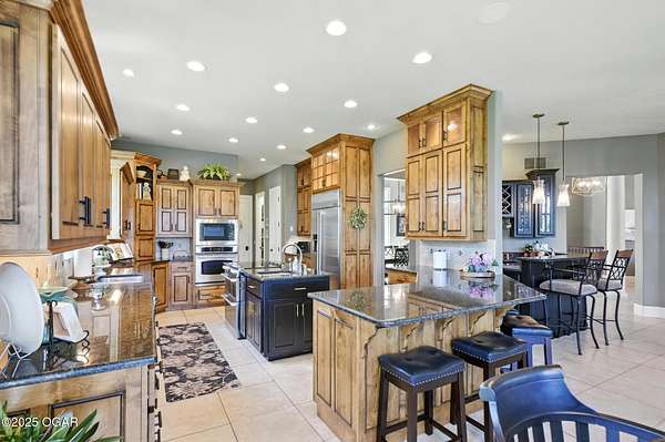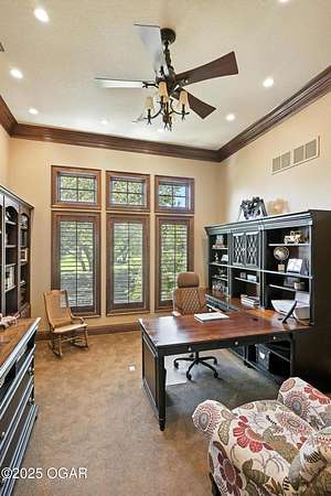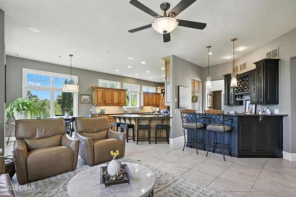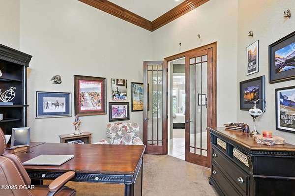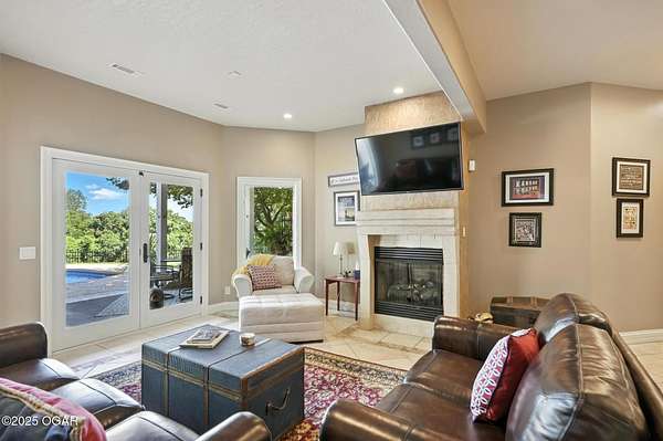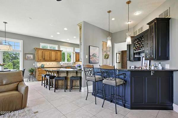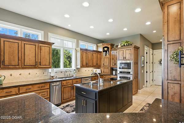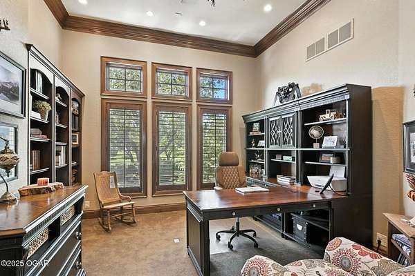 Experience breathtaking views and abundant natural light in this stunning home nestled in a private subdivision. This exceptional property features four spacious bedrooms plus a beautifully appointed office with built-ins, all thoughtfully designed for comfort and elegance. The main living room offers panoramic views, while a cozy hearth room opens to a breakfast area and a chef's kitchen with extensive counter space and storage galore. The expansive primary suite provides a peaceful retreat, and the walkout basement includes three additional bedrooms, a second kitchen area, a family room, and a wine/humidor room. Additional highlights include a heated pool, garden area, cedar closet, massive throughout, an oversized 3-car garage, and a separate John Deere room. With its resort-style feel and thoughtful layout, this home is truly a must see to appreciate its unique charm and functionality.