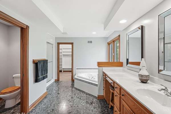 Tucked away on a beautifully private 5-acre lot, this spacious 5,000+ sq ft home offers the perfect blend of space, function, and potential - recent updates include roof and composite deck/steps & rails (2025), features a first floor primary suite, two gas stone F/P.s, finished walkout basement and the standout feature is the impressive 50 x 34, 1,700 sq ft detached garage fully heated and cooled, complete with a half bath and an additional rear garage bay ideal for hobbies, storage, or a workshop. Conveniently located, this property offers exceptional privacy with no HOA. A rare opportunity to own a versatile property with incredible potential in a sought-after setting.
