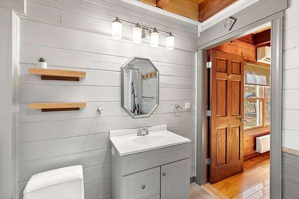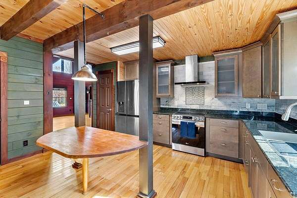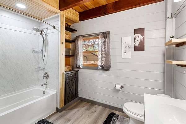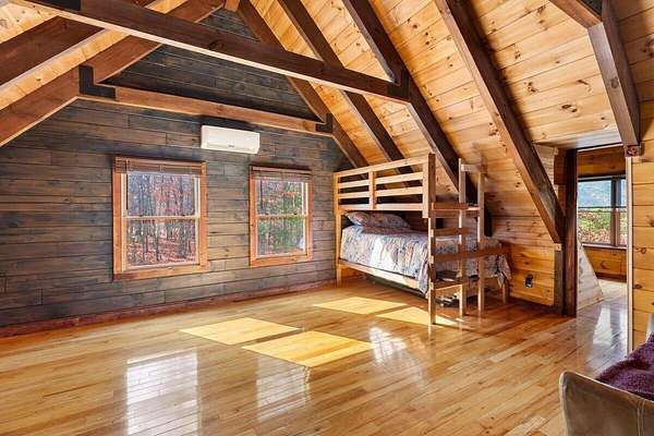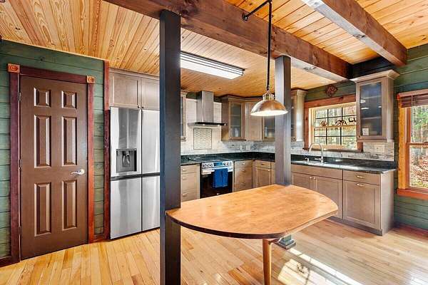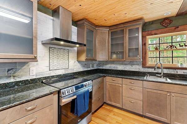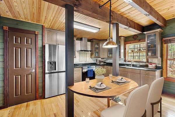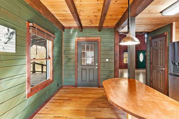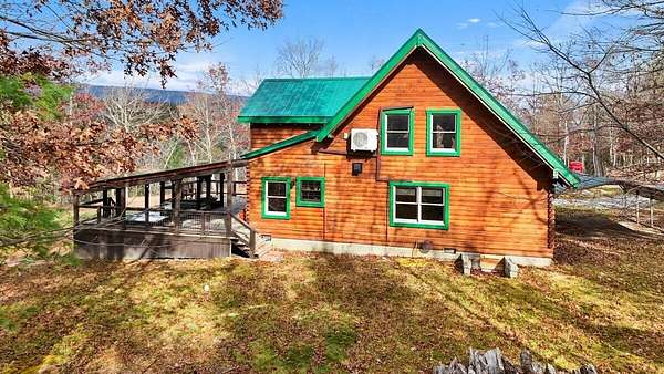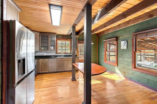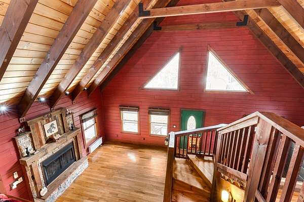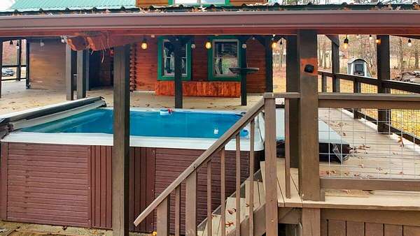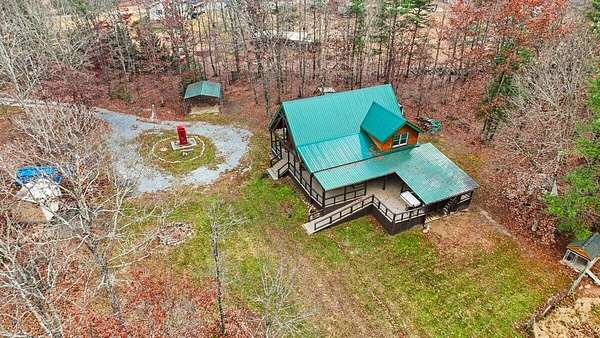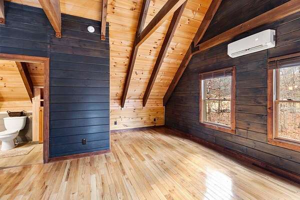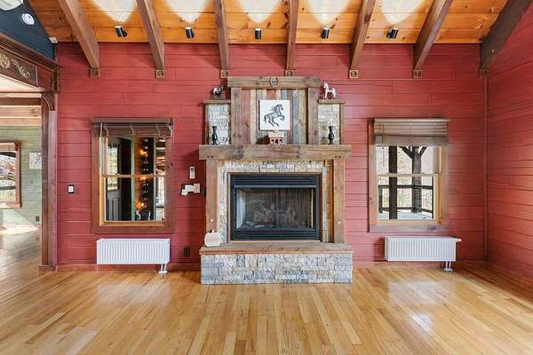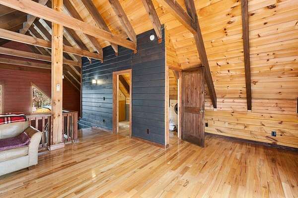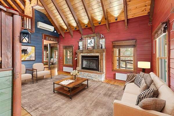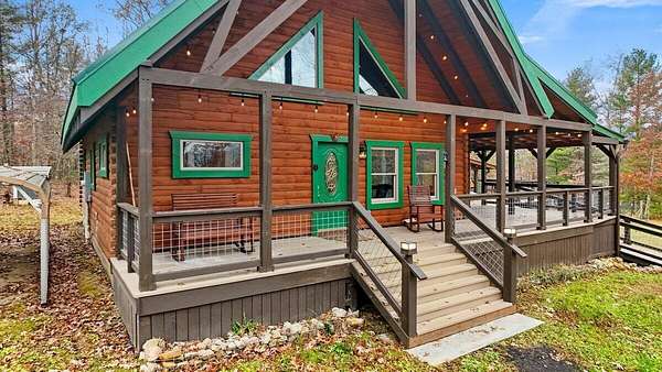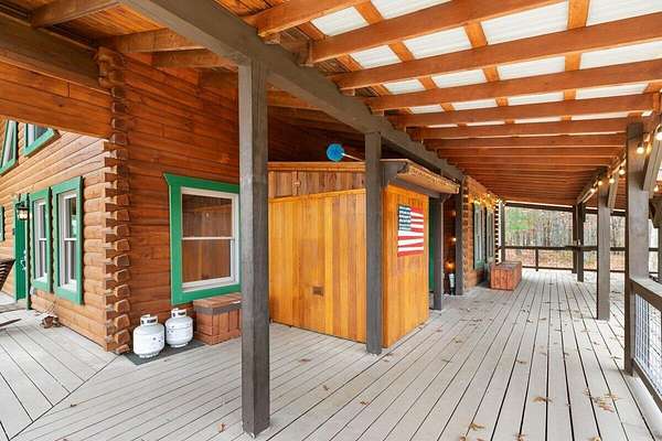 Private Log Cabin Bordering National Forest - Escape to this stunning two-story log cabin on 12 private acres, offering direct trail access for horseback riding, hiking, & endless outdoor activities. This warm & inviting home has three bedrooms & two newly renovated bathrooms. Inside, rich tongue-and-groove wood wall & ceilings, hardwood floors, & a 30ft cathedral ceiling create a sense of space & craftsmanship. The updated kitchen has upgraded cabinetry, granite countertops, & all new appliances. A charming built-in dog kennel is tucked beneath the staircase leading to an open air loft. Enjoy peace of mind with a new metal roof & the serenity of outdoor living across multiple covered porches. Features a swim spa & steam sauna. Surrounded by nature, a perfect getaway or forever home.