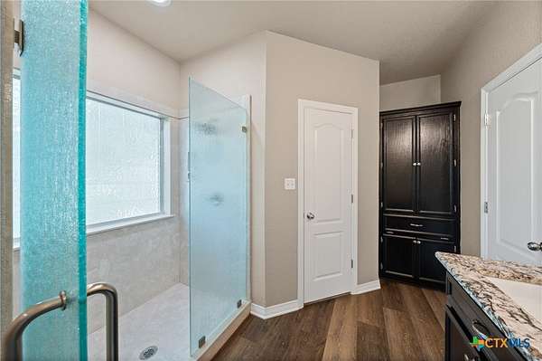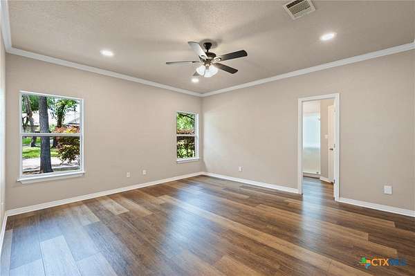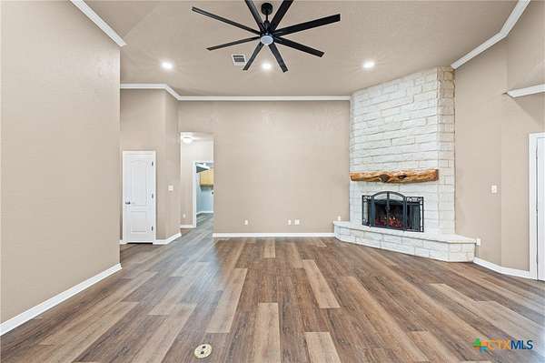 - Ceiling Fans, Crown Molding, Double Vanity, Granite Counters, Kitchen Family Room Combo, Open Floorplan, Separate Shower, Shower Only, Solid Surface Counters, Walk In Closets