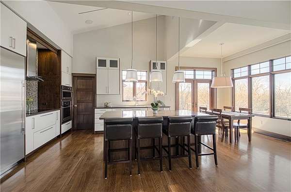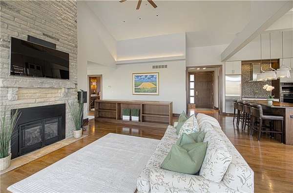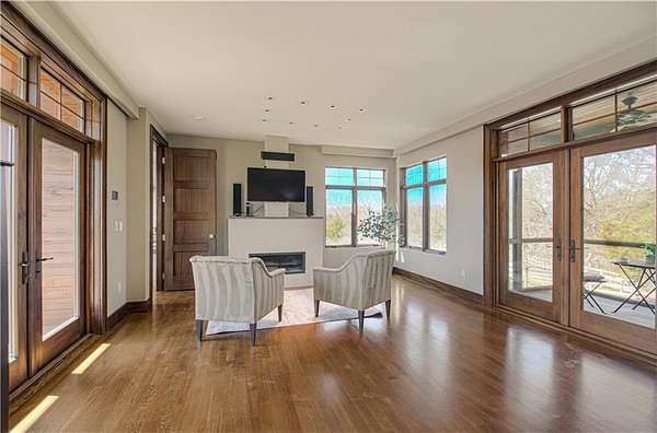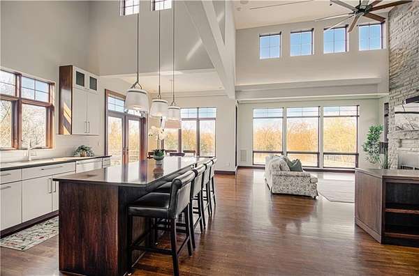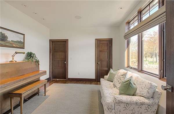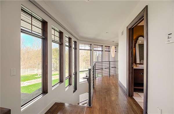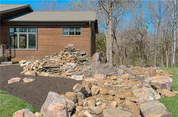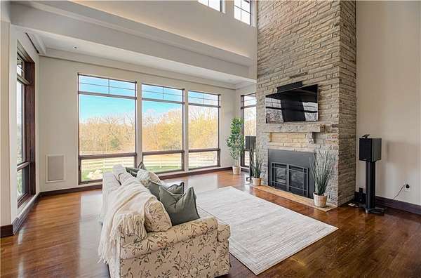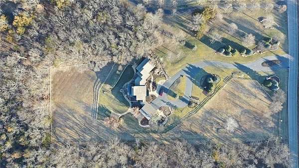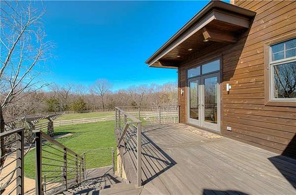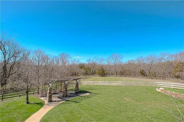 A stunning 4000+ sq ft custom estate set on 5 picturesque acres in Shawnee. Designed with exceptional craftsmanship and timeless detail, this home showcases soaring ceilings, 9-foot interior doors, and custom millwork throughout. Expansive windows frame sweeping views of the surrounding landscape, filling the home with natural light. Equipped with AMX and Lutron home automation, this residence offers seamless control of lighting, entertainment, and comfort at your fingertips. A new roof adds peace of mind, while the spacious layout provides ideal flow for both everyday living and entertaining. Enjoy the privacy of acreage living just minutes from city conveniences. A rare opportunity to own a refined estate property in an unbeatable Shawnee location.