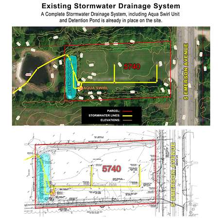 Outstanding Development Opportunity - HIGHLY MOTIVATED SELLER / Moving to Florida. Position your next office project on one of South Indianapolis' most active commercial corridors - One of the few shovel-ready office development sites remaining on South Emerson Avenue. 5740 S Emerson Ave offers 1.80 acres zoned C-1 (Office) with 199 feet of frontage and full curb cut providing full-in/full-out access-a rare combination of visibility and easy site circulation for virtually any office concept (medical, professional, service office, or owner-user). This site delivers an enormous head start on development: an existing stormwater drainage system with Aqua-Swirl unit and detention pond is already in place, sized for full buildout-a major time and cost advantage that can streamline civil design and accelerate your schedule. RECENT AREA DEVELOPMENT - Surrounding investment continues to elevate the appeal of this corridor with new retail development at Emerson & Thompson including new Wawa, Chick-fil-A, and Crew Carwash, as well as a recently added Kroger, VASA Fitness and Dutch Bros Coffee. Additionally, a proposed apartment development immediately south adds future demand from a growing residential base-ideal for professional services and office users. With 38,000+ vehicles per day and nearly immediate access to I-465 and I-65, this location checks all the boxes developers and end-users want: clean site, strong traffic, strong growth, and reduced upfront infrastructure cost.