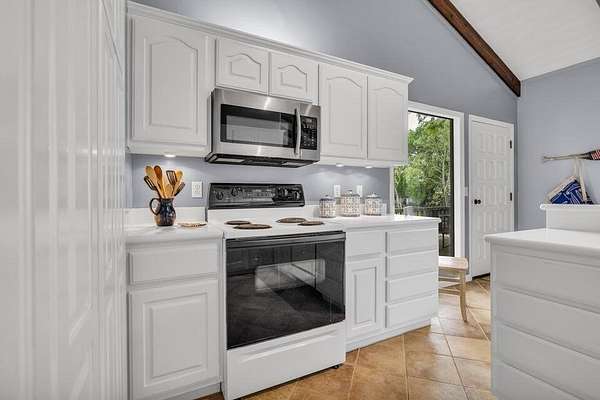 - Disposal, Electric Oven, Electric Range, Electric Water Heater, Microwave, Range, Washer/Dryer Stacked