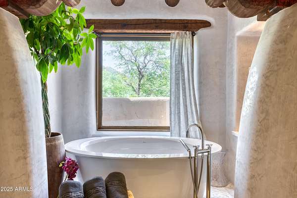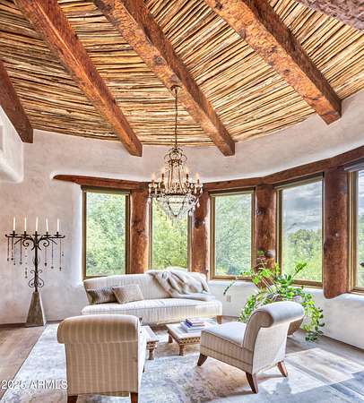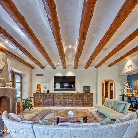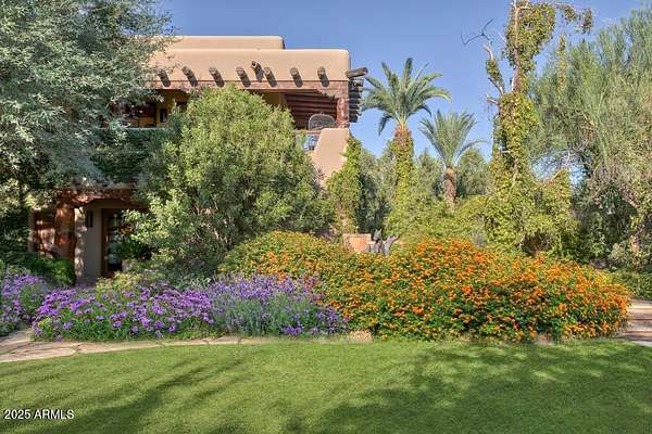 Be mesmerized walking thru your own botanical paradise, a rare 5-acre Paradise Valley oasis nestled among other sprawling estates. A several million dollar renovation inside and out was finished in 2017. A true Territorial masterpiece with hand-laid latillas + rich beamwork, this 6 bed 8 bath 14,344 sq ft home exudes authenticity and artistry. Wood-framed glass doors open to Mummy Mtn views, lush patios, koi ponds, and meandering streams that transport you far from the city. The property includes, a private casita, Savant smart home, heated bathrm floors, AC'd playhouse, 2-story treehouse w/ electricity, wine cellar and serene sculpture gardens. Outdoor living is elevated with bridges, lakes, greenhouse + an extensive lawn cantina perfect for events. An art collector's dream property, it has room to showcase a large art collection. This is more than a homeit's a private botanical retreat, alive with water, light, and nature. A rare, livable work of art in the heart of Paradise Valley. Come explore... and fall in love.
