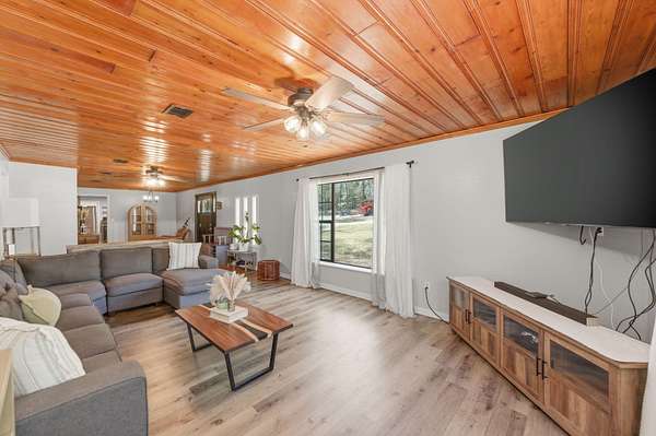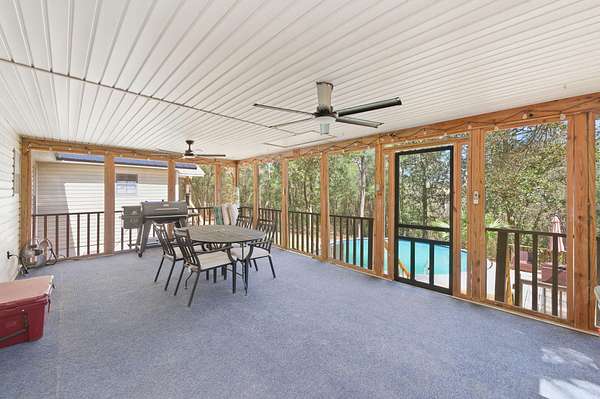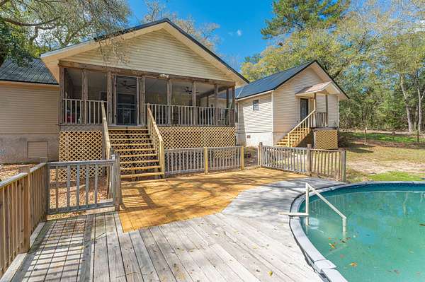 Check out this beautiful home hidden away in East Crestview! Privacy and peaceful natural surroundings are the highlights here. If you want to step outside and not see your neighbors, this is the place for you. Inside, you'll find a mix of original hardwood floors in some areas along with LVP and vinyl throughout much of the rest of the home. The layout includes a massive laundry room/mudroom and a large formal dining area that opens to a fully screened-in back porch, perfect for enjoying the scenery. From the porch, step down to a recently upgraded oversized deck where you can practice that diving form into your private pool. A large, almost fully enclosed, 20x60 workshop sits just to the right of the home, with electricity and an air compressor included. There is also a 50 amp RV hookup connected to a large shed located out front on a concrete slab. The driveway has been freshly upgraded with brand new gravel across its entire length. HVAC 2021 and Roof 2025. With privacy, outdoor living space, and plenty of room for hobbies or storage; this stunning home offers a unique opportunity to enjoy comfort, space and utility. You can feel the charm this place has the moment you step onto it.