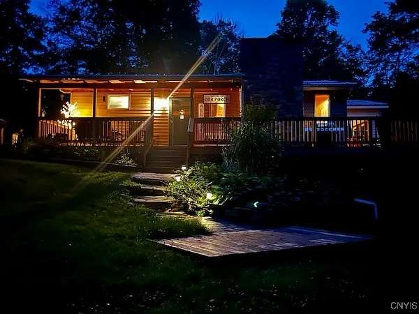 Welcome to this charming 2-bedroom country home with a wrap-around porch on 3.29 acres located in Scio NY, Allegany County. Tucked away in a peaceful country setting, this well-maintained home offers the perfect blend of charm, comfort, and nature. Currently, this home is a successful Airbnb property making it an ideal opportunity for investment or personal enjoyment. From the moment you arrive, the large wrap-around porch welcomes you into a serene lifestyle ideal for relaxing or entertaining while taking in the tranquil views and the gentle sounds of the creek that meanders through the property. Inside, you'll find a warm and inviting living room featuring a stunning, hand-laid rock fireplace. The spacious kitchen offers ample countertop space, generous cabinetry, and a convenient pantry. The newly-built sunroom is flooded with natural light creating the perfect spot to enjoy your morning coffee. The home features two comfortable bedrooms with closets and a full bathroom. A staircase leads to the basement which includes a washer and dryer and provides an excellent space for a workshop complete with direct access to the outdoors via ingress and egress. Recent upgrades include a new furnace, roof, deck, and wood stove. The expansive yard includes a stone fire pit and steps leading down to the creek where another fire pit offers a perfect gathering spot by the water. The majority of the property is covered in mature hardwoods including several maple trees perfect for starting a small family maple syrup operation. Nature lovers will appreciate the established whitetail deer run that crosses the land. Best of all, this home is being sold fully-furnished making it truly move-in ready or immediately rentable. Located just minutes from Breezy Point Campsite, this property is a true must-see to fully appreciate all it has to offer. Country living at its finest awaits!