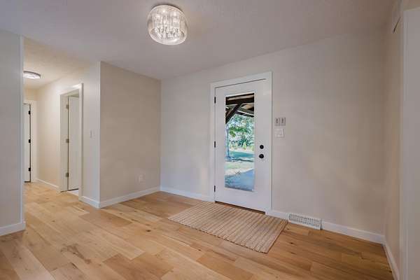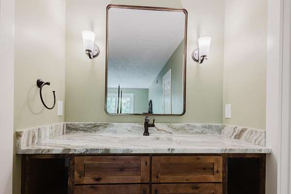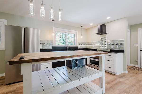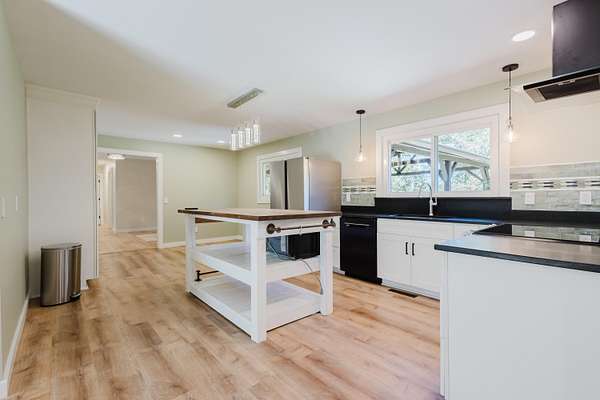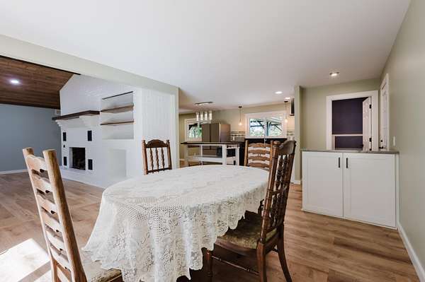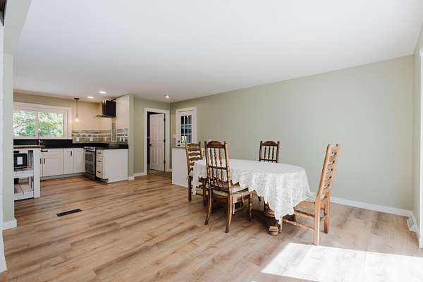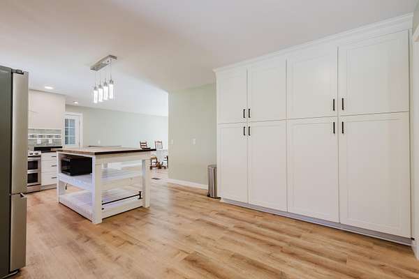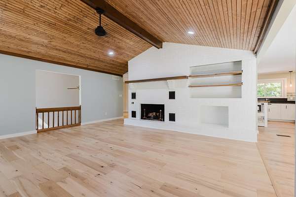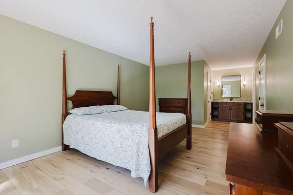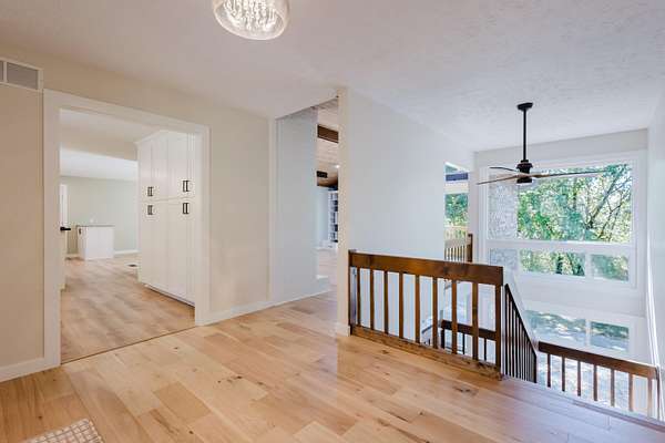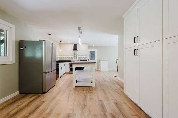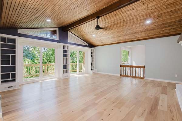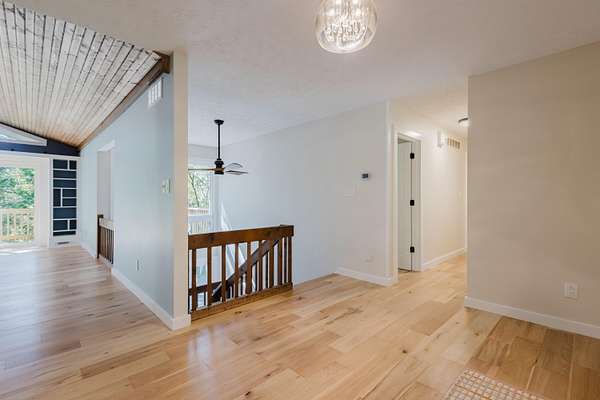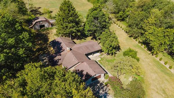 One-of-a-Kind Renovated Home on 14.3 Acres in Boyle County, KY - Just 6 Miles from Downtown Danville This is your chance to own a beautifully renovated, custom-built home offering peaceful seclusion, modern comfort, and natural beauty-all just minutes from town. Nestled on 14.3 acres that border the scenic Hanging Fork Creek, this spacious five-bedroom, two-and-a-half-bath home features approximately 3,800 square feet of finished living space, with over 1,800 square feet on the main level and an equally spacious finished walk-out basement below. The main floor showcases an open-concept design centered around a large living room with a cathedral tongue-and-groove ceiling, fireplace, built-in bookshelves, and a ceiling fan. Sliding glass doors lead out to a brand-new deck overlooking a wooded hillside that gently slopes toward the creek, creating a serene and private backdrop perfect for relaxing or entertaining. Adjacent to the living room is a fully remodeled kitchen featuring custom cabinetry and thoughtfully connected spaces, including a cozy breakfast nook on one end and a more formal dining area on the other. The dining area also opens to the back deck, allowing for seamless indoor-outdoor living. Throughout the main level, luxury vinyl plank flooring enhances the living areas, while the bathrooms are finished with durable tile. The primary suite on the main level is generously sized and includes a large walk-in closet and direct access to a private deck through sliding glass doors. The en-suite bathroom has been completely updated with new tile flooring, a walk-in Swan Stone shower, custom cabinetry, and modern lighting and fixtures. A second large bedroom on this floor, which could also serve as an ideal office or guest room, adds flexibility to the layout. A stylish half bath completes the main level's accommodations. The lower level of the home is a fully finished walk-out basement that adds both comfort and functionality. A spacious family room features a wood-burning stove set into the original fireplace, providing a cozy atmosphere during cooler months. Three additional bedrooms are located on this floor, two of which offer direct access to the outdoors through sliding glass doors that open onto a concrete patio. A newly renovated full bathroom with a walk-in shower serves the downstairs living space, and storage is abundant, with three walk-in closets, an under-stairs storage area, and a large utility room that is partially finished and highly versatile.