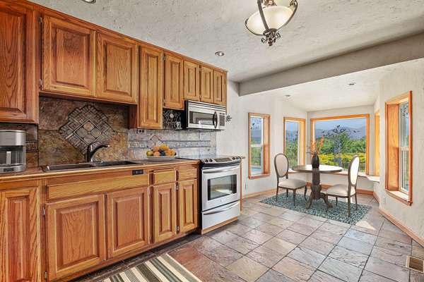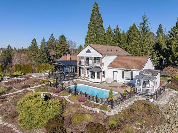 Back On Market and priced to allow for updates and/or extra savings! Move In Ready! Beautiful Mountain Views! Huge shop! Pool! This gated 1983 Colonial-style home offers 2,992+ sq. ft. of living space with sweeping valley & mountain views that will take your breath away. This 5-bedroom, 3.5-bathroom home is designed for comfort & versatility, featuring two spacious primary suites-ideal for multi-generational living or hosting guests. An additional760+ SF unfinished basement offers extra storage. The back patio and pool area provide the perfect setting for relaxation and entertaining. Car enthusiasts & hobbyists will love the incredible garage spaces, including an attached 2-car garage, a 34 x 50 garage/workshop with air compressor, and drill press, and an additional 32 x 23 garage with a loft and 3/4 bath. This gated property combines privacy, stunning views, and incredible amenities. Don't miss the opportunity to make this exceptional home