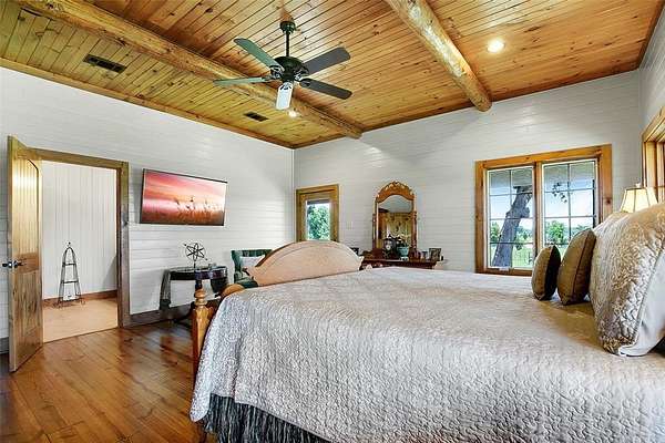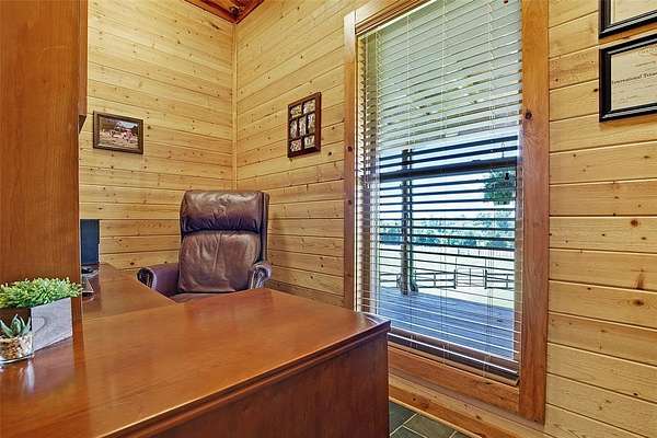 Unique 4BR 4BA Log Home with a sit-a-spell porch that beckons with a promise of hospitality, this Lake Fork custom-built charmer is surrounded by warm honey-hued logs and spectacular views from every room. Nestled on 17+ acres of serenity with a cattle barn, 5,000-ft pipe and cattle panel metal fence, 26-gauge Galvalume roof and stocked pond for those lazy summer days. The interior exudes rustic charm with a home office, an over-sized wood burning fireplace, indoor-outdoor speaker system and impressive slate & wood flooring.Beautiful kitchen cabinetry with a gorgeous farm sink, granite countertops and large work island. A short jaunt to the boat launch of Lake Fork, this home has the essence of a relaxed lifestyle. Ideas...perhaps put tiny log homes on the land for the fishing tournaments to rent and add additional income? Lake Fork is rated Bass Master fisherman number one lake to fish. Imagine the possibilities.