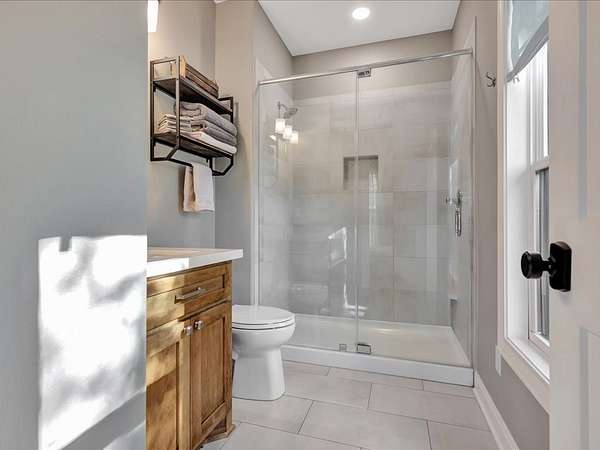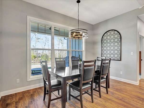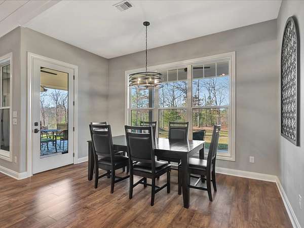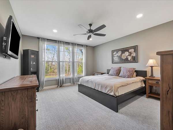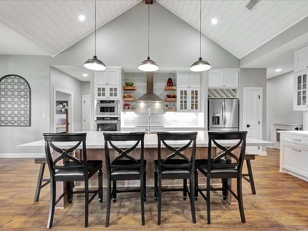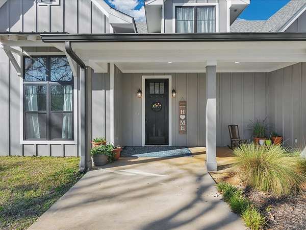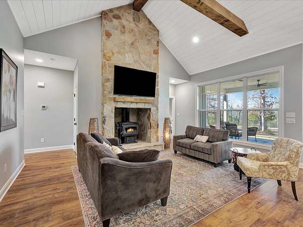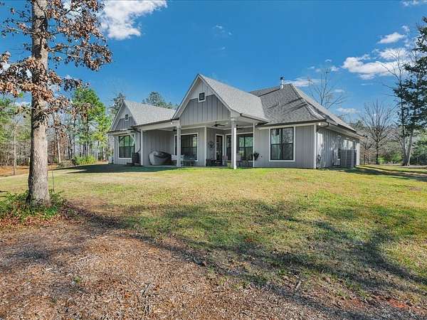 Welcome to YOUR DREAM HOME! This stunning 2020 modern traditional property is meticulously maintained and nestled on a serene two-acre lot in Martinsville ISD. The design features a thoughtful split living arrangement and an open concept living area with exposed beams and a cozy wood-burning stove tucked into a floor-to-ceiling stone hearth adding rustic charm. The Host's Kitchen serves as the centerpiece, boasting a large island, high-end appliances, and elegant finishes. On the main level, the spacious primary suite includes an ensuite bathroom with an incredible walk-in shower, large walk-in closet, and laundry access while a guest wing features three bedrooms and two full bathrooms. Upstairs, a versatile bonus bedroom with a full bathroom. The side entry includes a gated area for pets. Additional amenities include a wash sink in the garage and a whole home generator. The extra deep covered back porch invites you to relax and enjoy gentle rain showers or open-air gatherings.