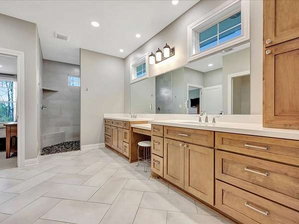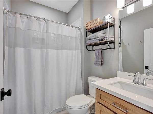 - Blinds, Breakfast Bar, Ceiling Fan(s), Kitchen Island, Open Floorplan, Pantry, Primary-Lower Level, Smoke Detectors, Split Bedrooms, Vaulted Ceiling(s)