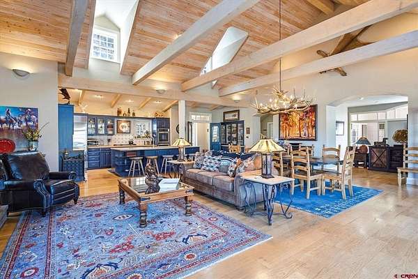 Ashley Blackmore, Blackmore Group, O: 970-444-2431, ashley@ashleyblackmorehomes.com, www.crenmls.com: Grandview Ridge occupies a rare position on Missionary Ridge where elevation, live water, access, and privacy converge, set above the Animas Valley and bordered by flowing Coon Creek to deliver a combination that is increasingly difficult to replicate: commanding red cliff and mountain views, immediate National Forest access, and the scale required to comfortably host family and guests. Approached through a gated entry and paved drive, the estate feels removed without being remote, with the landscape opening north toward Engineer Mountain, Spud Mountain, and the Hermosa Cliffs, where changing light and seasonal color become part of daily life. Spanning over 6,400 square feet, the residence is intentionally designed for multi-generational living, extended stays, and gatherings that flow easily between indoor and outdoor spaces, offering 5 private bedroom suites most with decks or balconies and multiple living areas that support conversation, work, recreation, and rest simultaneously without interruption. Gas log fireplace in bedroom in north end and wood burning fireplace in main living area. Kitchen fully updated with stainless steel appliances, dining island, 2 ice makers & 2 zone wine cooler. Coon Creek creates a natural anchor rarely found this close to Durango, with a level bench along the year long water providing flexibility for horses, recreation, or quiet retreat, while the elevated home site captures expansive valley and cliff views. Outdoor living is central to the experience, with large decks overlooking the Animas Valley and red cliffs, offering space for long dinners, fireside evenings, and gatherings that stretch late into the night, equally suited to intimate family use or hosting at scale. Missionary Ridge Road provides immediate, year-round access to Henderson Lake and surrounding National Forest lands for ATVs, horseback riding, Jeep access, hiking, snow play, and motorized recreation without trailering or long drives, an increasingly rare combination of access and privacy. With short-term rental flexibility adding valuable optionality, Grandview Ridge functions as an income-producing asset (Sleeps 15), legacy property, or personal retreat, delivering position, scale, water, views, and experience in a way few Missionary Ridge estates can. Sold furnished, less personal exclusions and turn key. Too many features to list, please inquire for additional details, prior rental income history or private showing!