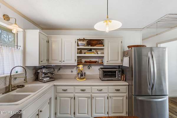 1.5 ACRES...Experience the charm of country living in this beautifully updated brick home that comes with a two car garage with a workshop area. Featuring three spacious bedrooms and two full baths, this home offers a warm and inviting atmosphere with a large living room with lots of natural light complete with a cozy wood-burning stove. The seller has thoughtfully opened up the living room and kitchen area, creating a more open-concept feel. Recent updates include fresh paint inside and out, new appliances, modern faucets, stylish light fixtures, and more. Nice size pantry. Enjoy peace of mind with a newer metal roof, a sturdy wood fence for your animals and a well water system equipped with a newer pump, water filtration system, and UV light-city water is also available. Sitting on 1.5 acres. RV Hook up..Patio.. Don't miss this wonderful opportunity to own a slice of country paradise!