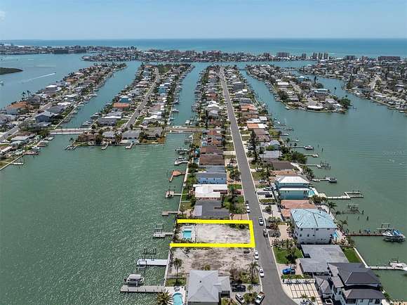 Build Your Dream Home on Crystal Island in Madeira Beach! This stunning lot offers breathtaking water views and is located a few houses away from the cul-de-sac offering ultimate privacy. This lot is complete with a newer seawall (2020) and includes a composite dock with 13,000 lb. boat lift (2020) and newly-approved permits to dredge the surrounding water, enabling deep-water docking for larger boats. This property is also a quick golf cart ride from the beach, shopping, and dining. You're only a short distance from the lively cultural scene in DTSP, offering world-class dining, entertainment, museums, and shopping. With access to Tampa International Airport, the Mall, and downtown, the opportunities are limitless! The seller has already had architectural renderings created allowing you to envision your dream home. Property also listed under MLS #TB8361629 as pre-construction custom home and renderings are shown and can be modified to fit your needs. Aerial pictures highlighted lot is for sale only. Neighboring lot is also being built by same builder.