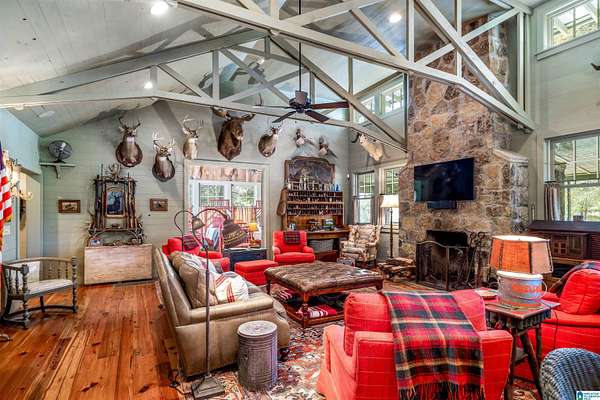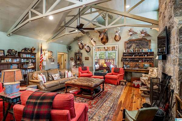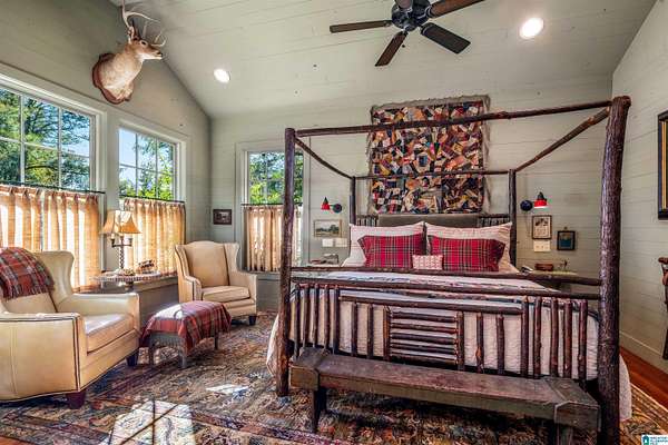 Welcome to 575 Guinns Cove Lane, nestled in the serene valley of Guinns Cove, just 35 miles north of Birmingham. Sugar Creek Farm spans approx. 440 acres of pristine countryside with wooded ridges, lush open fields, and abundant wildlife. Private 7-acre lake with boathouse and pier. Immaculately designed lodge featuring 4 bedrooms, 4 baths, and expansive screened porches with lake views. Exceptional improvements include a 4,900+- SF main barn with loft, 2,400+- SF equipment shed, 5,600+- SF climate-controlled storage building, plus a historic barn. Scenic Sugar Creek, a natural spring, seasonal waterfall, food plots, and gated entry enhance the property's rare beauty. Whether envisioned as a recreational retreat or working farm, Sugar Creek Farm is a legacy opportunity and truly one-of-a-kind. Listed by Scott Boudreaux, LAH Sotheby's Int'l. Realty - 205.835.9787 and Austin Blair, LAH Commercial Real Estate - 205.478.7805. Contact brokers for details or to schedule a private tour.