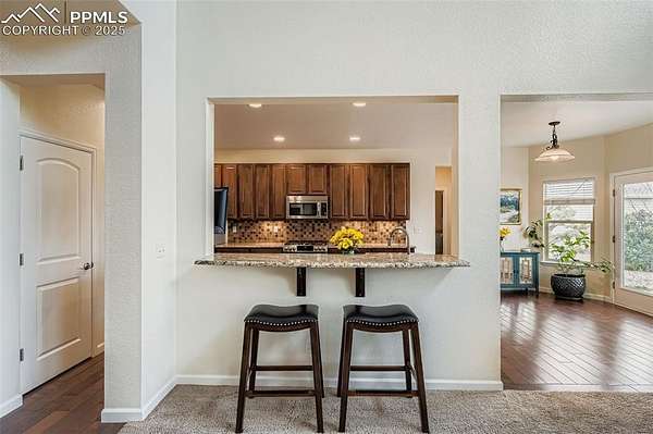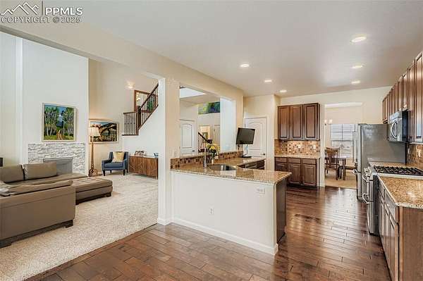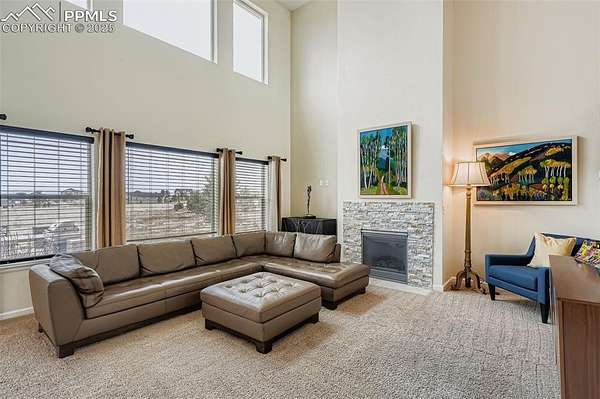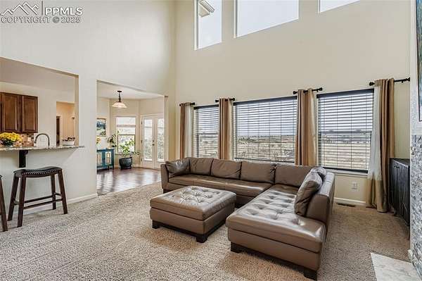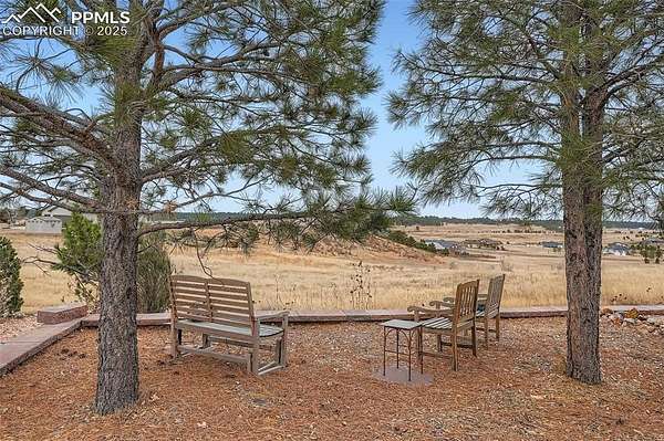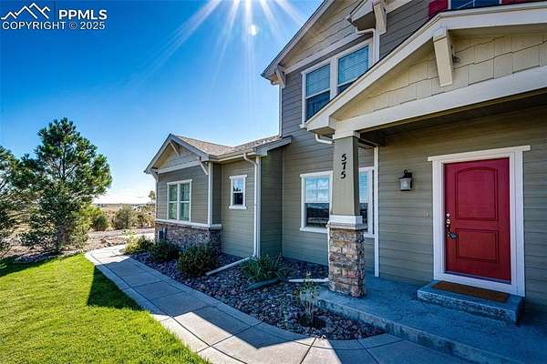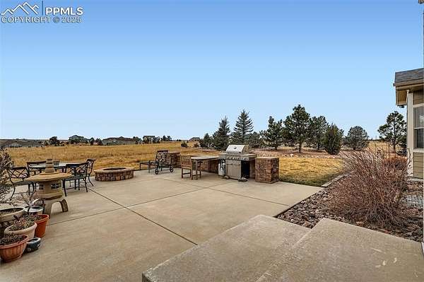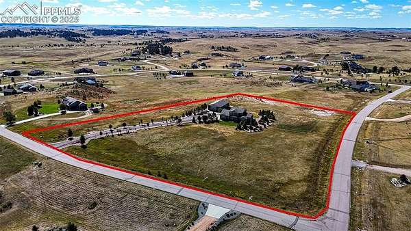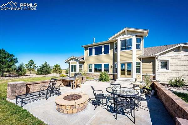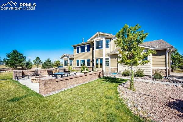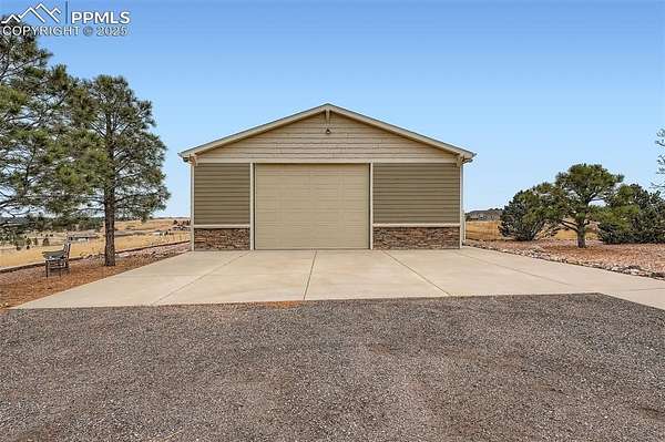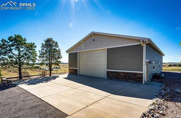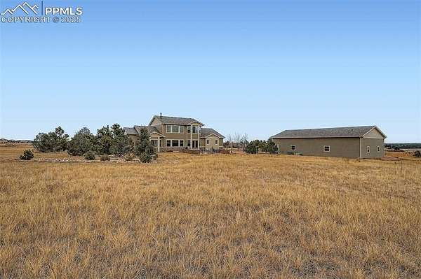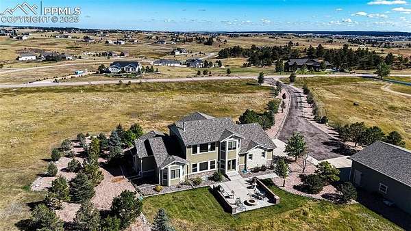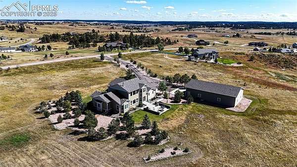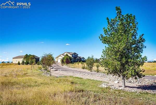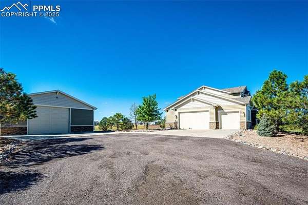 Set on more than five acres of pristine Colorado landscape, 575 Heritage Trail delivers a luxury acreage lifestyle framed by rolling meadows, dramatic cliffs, and endless vistas in the prestigious Wild Pointe Ranch community. This rare setting offers direct access to miles of walking paths and equestrian trails, inviting you to explore the surrounding beauty on foot or horseback while enjoying the peace, privacy, and natural grandeur that define this neighborhood. The home blends refined finishes with warm, modern comfort, featuring sun-filled spaces, soaring ceilings, rich hardwood floors, and a gourmet kitchen with granite surfaces, premium cabinetry, and an oversized island designed for entertaining. The primary suite is a private retreat with spa-level amenities and serene views, while the finished basement expands the home's versatility with room for recreation, fitness, media, or multi-generational living. A crown jewel of the property is the extraordinary 2,160 square foot workshop designed for RV, boat, and collector storage, offering upgraded dual-phase power, full drywall, heat, water, and an oversized 12.5 by 15.5 foot door that easily accommodates large vehicles, equipment, and professional-grade hobbies. Outdoors, the expansive acreage provides room for animals, gardens, toys, and future enhancements, all framed by breathtaking sunsets that spill across distant ridge lines and open terrain. The covered patio is perfect for evening relaxation or sophisticated gatherings, creating a seamless connection between indoor comfort and the surrounding natural splendor. With luxury finishes, unmatched utility, and a setting that feels like a private sanctuary yet remains minutes from Parker, Castle Rock, and the conveniences of town, this property stands as one of the finest offerings in the Elizabeth area and an exceptional opportunity for buyers seeking elevated living with extraordinary space and scenery.