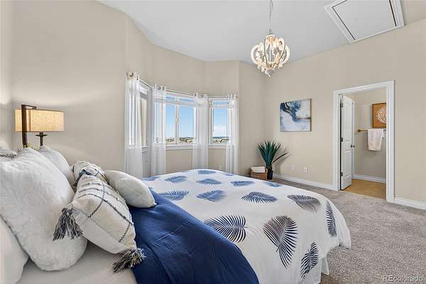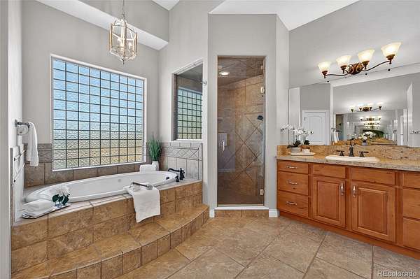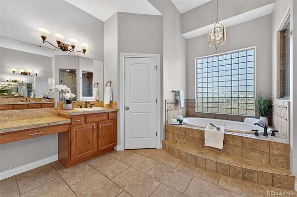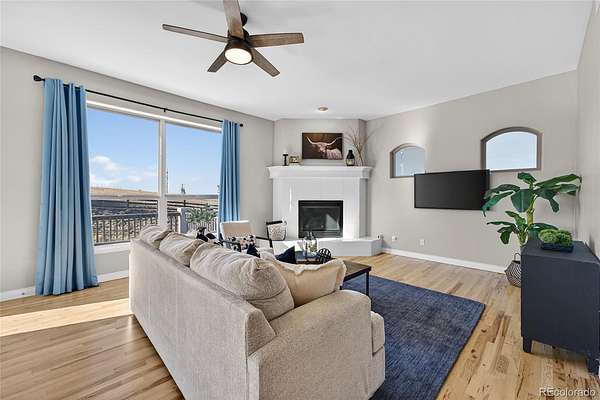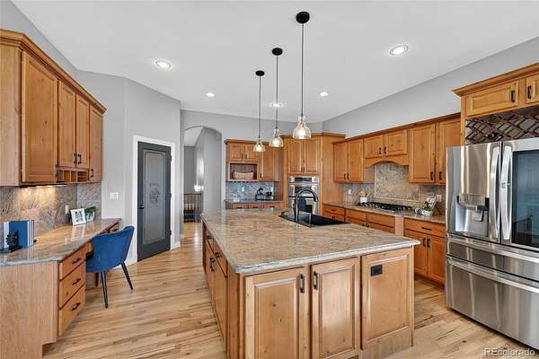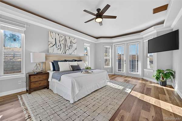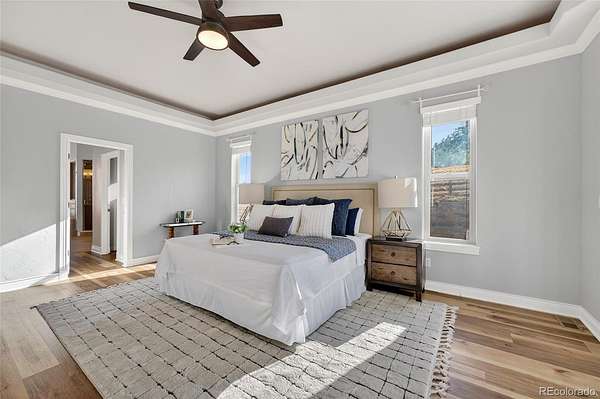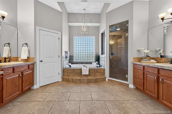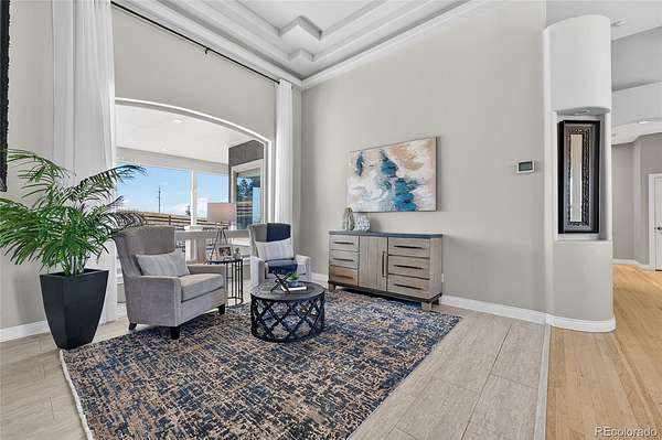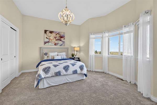 The gourmet kitchen is a culinary dream with an oversized island, spacious dining area, gas cooktop, and walk-in pantry, designed for everyday luxury and memorable gatherings. The inviting great room, warmed by a cozy gas fireplace, captures Colorado’s sunsets through expansive windows. Retreat to the sophisticated primary suite featuring lit tray ceilings, dual walk-in closets, and a lavish 5-piece spa bath with jetted tub, dual shower heads, and double vanities. French doors open to a private deck, designed for a future hot tub. A large, second ensuite on the main level offers secluded comfort. Upstairs, a versatile bonus room serves as a 3rd ensuite bedroom, game room, or private hideaway. The main level office can flex as a 4th bedroom with a bathroom outside the door. Spacious mud/laundry room with sink and storage connects to the oversized 3-car garage and a fenced dog run.