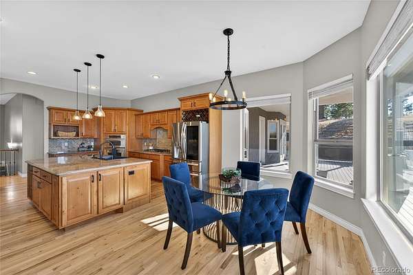 The expansive deck, complete with gas valve, is perfect to enjoy the views of the professionally designed xeriscaped yard with about 2,000 sqft of premium turf, a scenic dry riverbed, and terraced planters. Climb the hillside for panoramic front range views and awe-inspiring sunsets.