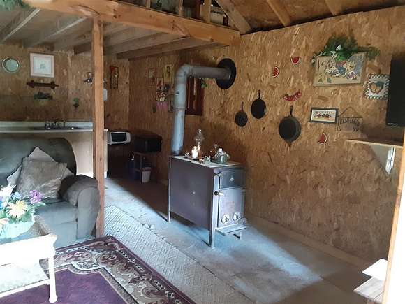 20' x 20' cabin with a half loft on property . It is wired for a generator and satellite TV. The land is located at the end of a county Rd. Hunting land with creeks and a pond. The cabin (640 Sq Ft) is heated with both wood and propane. The land has large trees and year-round water. The property is bordered by a gravel rd on one side. The current owner uses a generator. If you are looking for privacy and seclusion, you have found it!