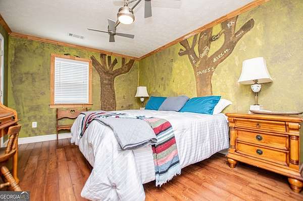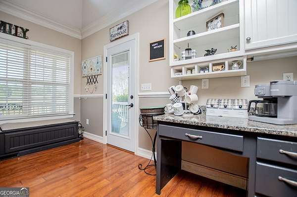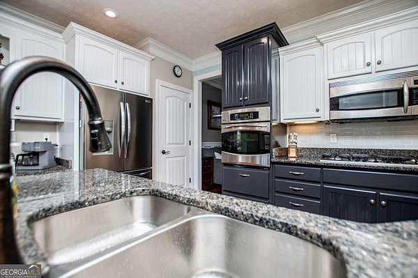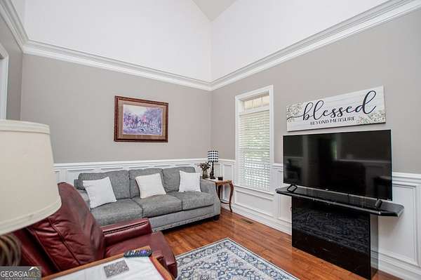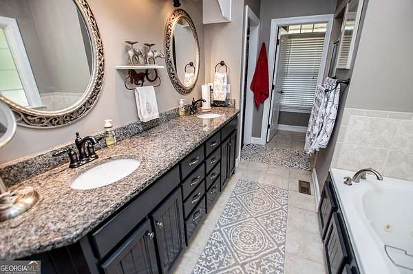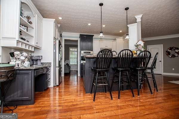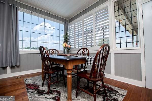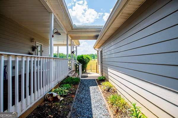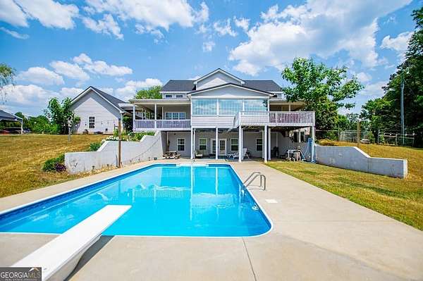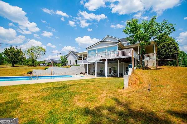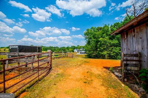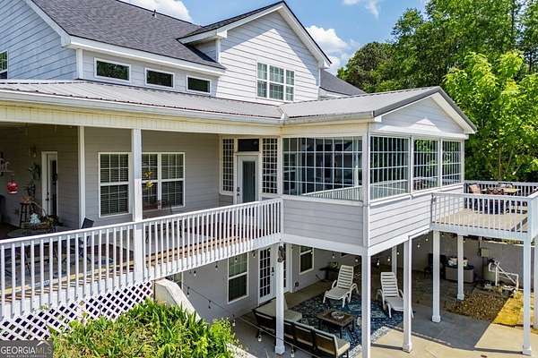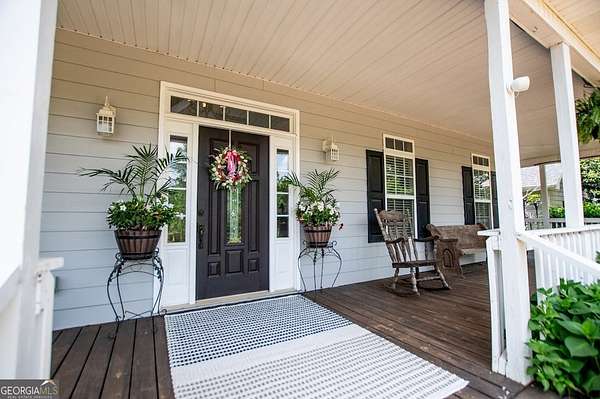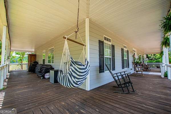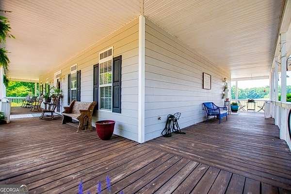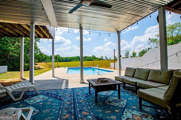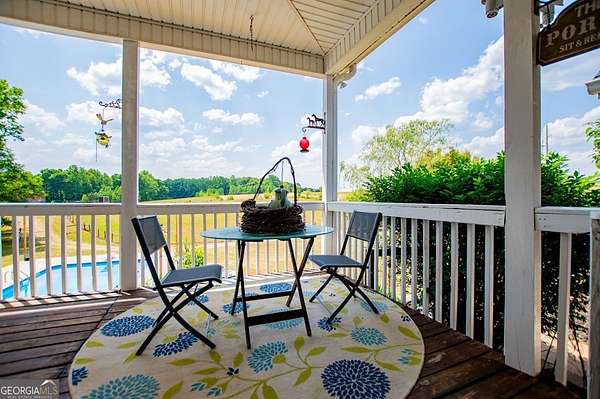 Set on nearly 19 private acres in the desirable Lowell community, 575 Liberty Church Road offers the perfect blend of peaceful country living and thoughtful luxury. Tucked away from the road, this custom-built Southern home welcomes you with a classic wraparound porch and picturesque views of the surrounding pastures. Inside, the home features 5 bedrooms and 4.5 bathrooms, including a spacious owner's suite on the main level. The retreat-style primary suite offers a double vanity, whirlpool tub, separate shower, and a large walk-in closet with custom built-ins and direct access to the laundry room for added convenience. The gourmet kitchen is designed for both everyday living and entertaining, featuring stainless steel appliances, granite countertops, custom cabinetry, and a breakfast bar. Just off the main living space, a bright sunroom with remote-controlled shutters provides the perfect spot to relax. Upstairs, you'll find 2 additional bedrooms, a full bathroom, and a versatile bonus room. The finished terrace level is ideal for multi-generational living or entertaining, featuring a second full kitchen and laundry room, 2 bedrooms, 2 bathrooms, and a living area with direct access to the pool and patio. Outside, the property truly shines. A 40x60 horse barn with 7 stalls and a tack room, multiple fenced and cross-fenced pastures, and a 3-car garage connected by a breezeway provide exceptional functionality. Enjoy the in-ground pool, a fenced garden area, and the added charm of a stream running along the back of the property, all while enjoying the privacy of a home set well off the road with an asphalt driveway. Additional highlights include a roof that is less than one year old and a convenient location near Highway 5 with easy access to Carrollton, Newnan, and the Atlanta airport. This property offers space, functionality, and classic Southern charm in a beautiful rural setting.