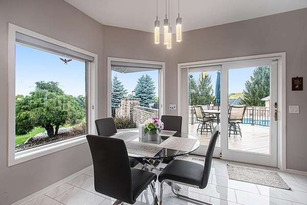 Welcome to this beautiful contemporary home offering 5 spacious bedrooms and 3.5 bathrooms, nestled on a generous 1.65-acre lot. This property seamlessly blends modern living with comfort, making it perfect for everyday living and exceptional entertaining. Inside, you'll find a bright, open layout featuring new electric throughout (updated just 4 years ago), two efficient furnaces, and a whole-house generator for peace of mind. The main floor includes one bedroom and a convenient laundry room with washer and dryer, and the upstairs master suite is a true retreat, complete with a private second-story patio. The lower level boasts a large family room, a mini kitchen, and a 5th bedroom ideal for guests, in-laws, or additional living space. Step outside to your backyard paradise, featuring a heated inground pool, a pool house with its own bathroom, and a natural gas hookup for grilling. Whether hosting a summer party or enjoying a quiet evening, the expansive indoor and outdoor entertainment spaces are sure to impress. Don't miss this rare opportunity to own a spacious, move-in-ready home with every detail thoughtfully designed for comfort, function, and fun.