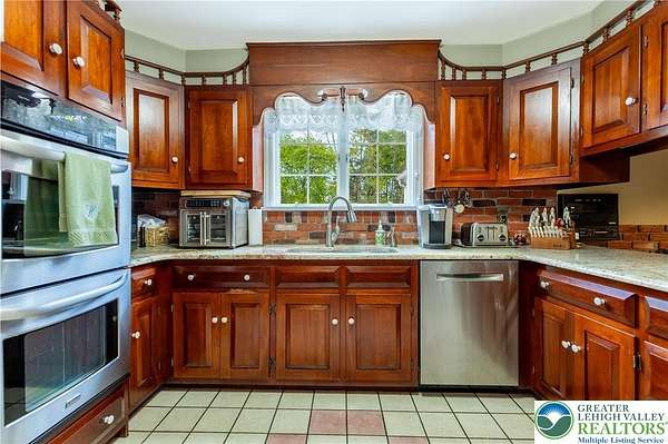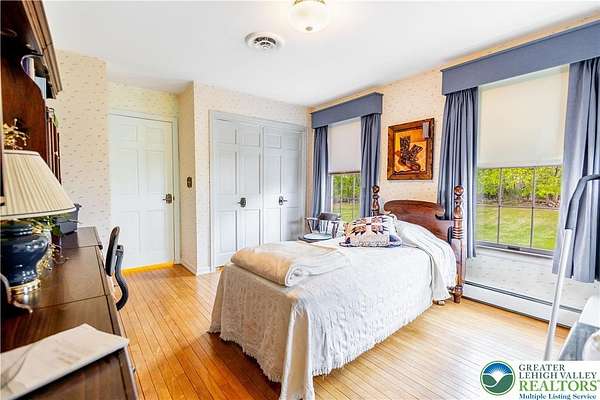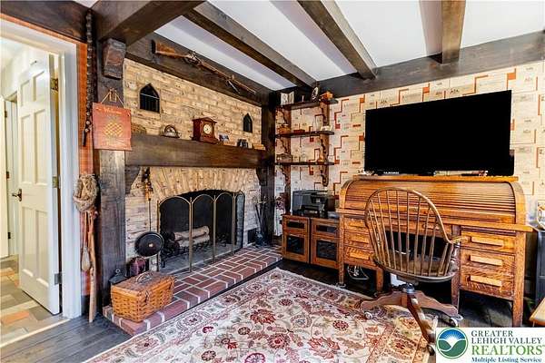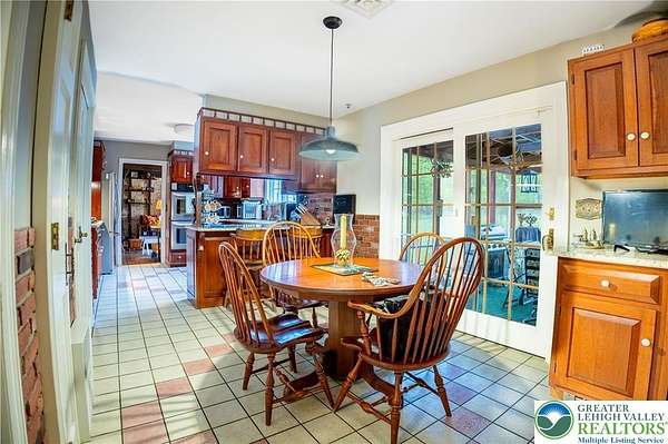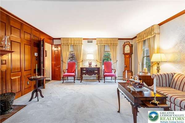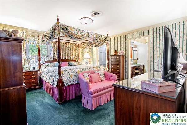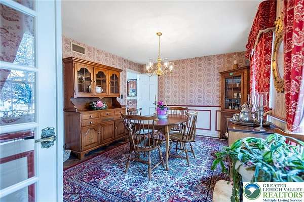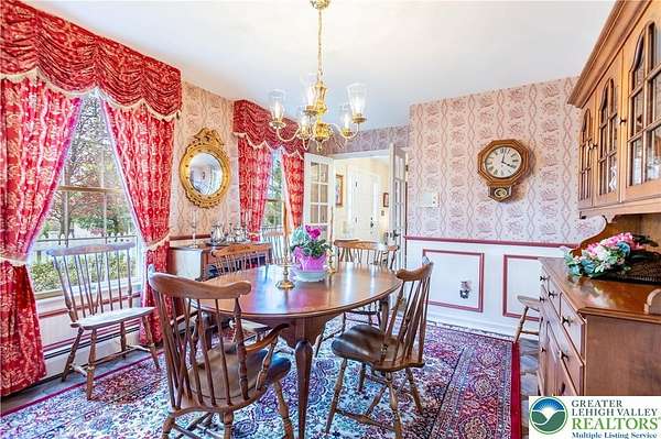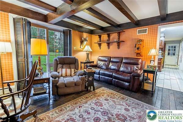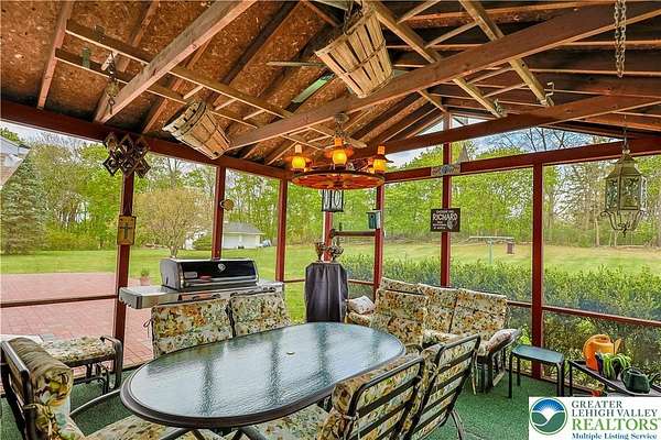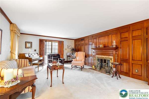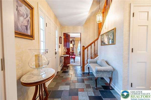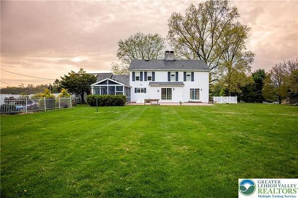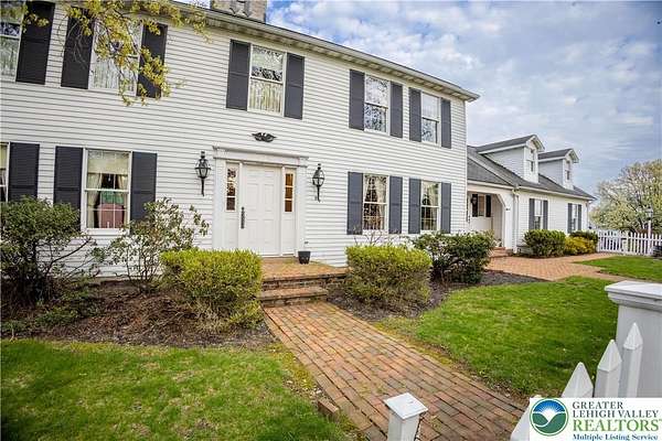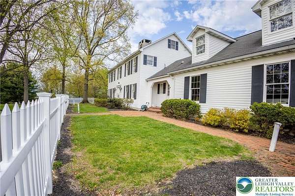 Multiple offers received; highest and best due by April 27th, 2026 5pm. Welcome to this stately colonial in Bangor Boro. Set on a well-manicured 2.5-acre property, this home boasts architecture & artistic talents of local wood sculpture: Dennis Collier. Built by the current owners, you will see pride in ownership & the attention to detail they put into every rm. Kitchen offers cherry wood cabinets, SS appliances and a stained-glass cabinet in breakfast nook area. Quality interior solid wood doors; brand new front door. Den features exposed wood beams & a beautiful wood FP overlooking the backyard where you'll find deer graze in the setting sun. Formal LV has a cherry wood wall & wood burning FP. Formal DR has lovely oak floors, & custom fitted drapes. 2nd floor has lg closets in every room; including Primary BD/BA; 2 additional BD's,2nd floor laundry, & multipurpose room w/ private set of steps leading to the garage. Oversized 2 car attached garage as well as a det. 2 car garage in the back left hand corner of the property. Partially fin basement w/ large oak office & a wet bar accompanied by a family room area. Outdoor features include: inground pool & hot tub w/ a changing room area; w/ screened in back porch perfect for entertaining & private enjoyment. Decorative white vinyl fence in the front yard increases privacy & adds to curb appeal. This home is one of a kind for any folks trying to be more self-sufficient; the house has a well & public water access; Generac generator too! Come see this home before it is gone.