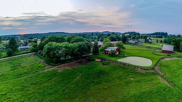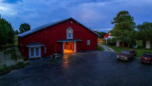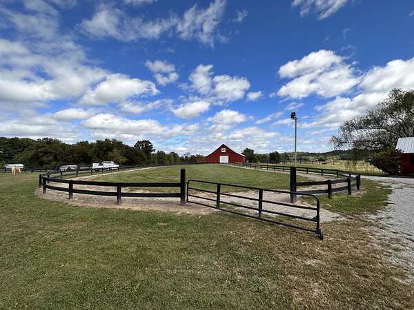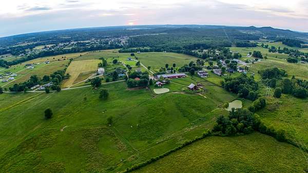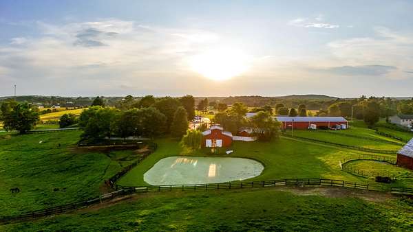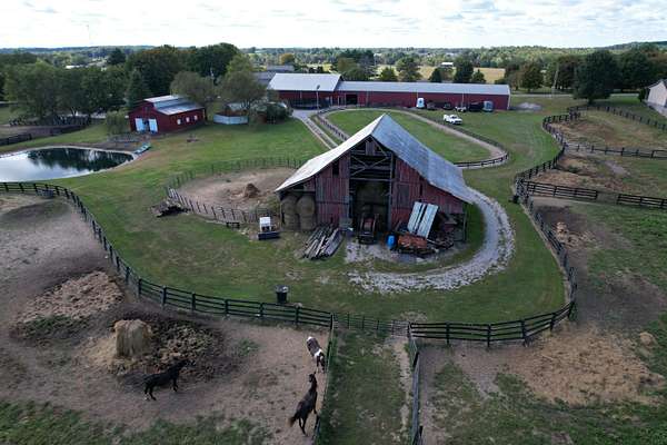 Presenting an iconic equestrian oasis set on 39.96 surveyed acres, thoughtfully designed for serious horse enthusiasts and refined country living. This exceptional property features three barns, a farm workshop, and a two car garage, along with 17 horse stalls and top tier training facilities. Enjoy a large indoor lighted riding arena, a 70x90 outdoor lighted training arena, tack room, rider's lounge, washroom, and RV parking. Storage is abundant with capacity for approximately 6,000 small square bales and 72 round bales. The farm is fully equipped with 7 paddocks, two stocked fishing ponds, and fertilized hay fields, all designed for efficiency and ease of operation. Completing the estate is a move in ready Cape Cod style farmhouse offers three bedrooms, three baths, and a bonus area off the upstairs bedroom, blending classic charm with comfortable living. A rare opportunity to own an established equestrian property where function, beauty, and Kentucky horse country lifestyle come together seamlessly. Saddle up, grab the reins, and make this exceptional equestrian farm your private retreat, thriving business, or hobby of your own. Enjoy the rolling acres as you ride or sit peacefully to watch the sunrise or sunset. Operated as Destiny Stables, this property offers multiple income opportunities.