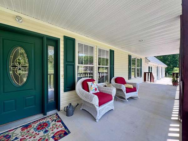 Spacious cape code home move in ready with 4 lovely bedrooms 3 baths and plenty of living area with living room, gathering room and den. The beauty of this home sits on 40 acres that has attached oversized 36x27 garage, detached 20x24 garage and newly installed 36x32 pole barn with 12' doors on both ends for easy in and out. Recently installed is the dual forced air heating and cooling systems. As a bonus a hotwater boiler system for a supplement heat source. A 2023 full house Generac generator. The new upstairs boasts 2 bedrooms, bath, gathering room and 42x12 storage area. Enjoying your morning coffee on the covered back deck or relax on the full length front covered porch. Pristine home with wonderful privacy and solitude but yet only 2 3/4 mile to US Rt. 33