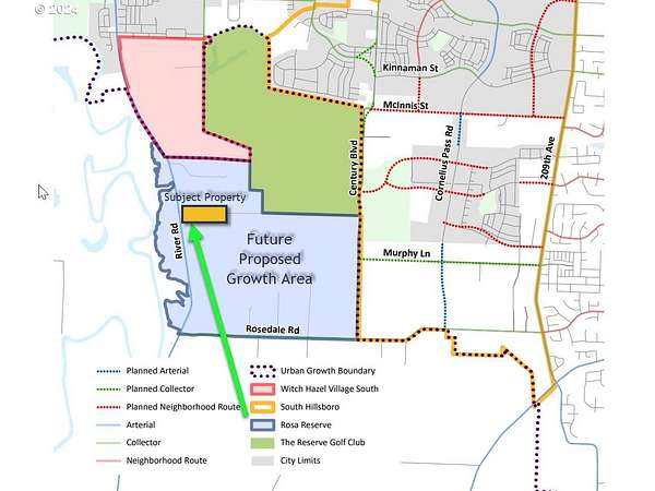 Once in a lifetime offering! Two parcels make up this 7.62 acre small acreage just on the West edge of The Reserve Golf Course and HOT South Hillsboro. Settle into this lovely 2,327 SF Ranch style, 3 BR, 2 BTH home with room for everyone. Stoke the Soap Stone woodstove, grab a coffee, and head onto the back deck, gardens, & fruit orchards! Shoot hoops or play pickle ball on your private court with lights. Then it's time to feed the chickens, ride your horses in the 60x108 lit arena. Check the 36 X 72 Barn with 7 stalls, all with paddocks. A great Equestrian property! Lights in arena & barn, tack room, rubber mats, wash rack, & a round pen for training if you like! Not into horses? No problem- with a seperate gate, fenced gravelled lot & mutliple storage buildings, this is a perfect spot for boats, work trucks & equipment, RVs, you name it. A most excellent place to launch or support your enterprise! Extensive fenced pastures, woods, & areas to ride this property has all the country you can handle right now. Now for the good part. Located in Rosa Reserve, this land is slated for future development. Land like this once annexed is selling for up to 1 Million per acre. It may be 5 to 10 years (or longer) but your investment here is going to pay off like no other we think! A great 1031 investment, great rental potential too- moreover just a perfect country property for anyone wanting level usable land with great buildings and setting! Home sits way back off Rosa Road and is so very private! Call Broker for a full packet!