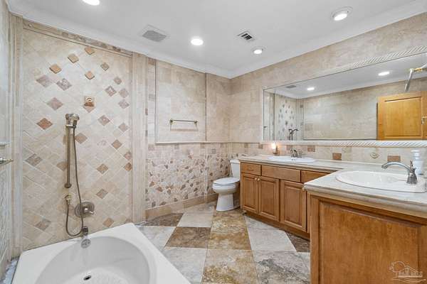 This unique property is in the heart of town but feels like you are out in your own oasis! Once inside this beautiful 2 story brick home with a circular drive you will find travertine floors, an updated kitchen with stainless steel appliances, a separate dining room and a wood burning fireplace in the living room. There are 3 bedrooms and 2 full baths downstairs. As you begin upstairs, you have a private bedroom suite to the right with a full bath and outside deck access. Across the hall is the main bedroom suite complete with a large bathroom, double vanities, large walk-in shower, and a jetted tub that looks over your private acreage. Off the rear of the main bedroom is a walk-in closet with enough space for storage, an office or a personal gym. The property has a tennis court, in ground Gunite Pool, sauna, and a separate guest house that has a full bath and kitchen (use this as a mother-in-law suite, studio or to generate some income as an Airbnb with its separate gate entrance for access). The back yard is fenced with an 1,856-sf steel framed barn and a separate Run-In. There is also a well Pump for lawn Irrigation. The main house, irrigation wellhouse and pool/guest house all re-roofed in 2021. A new septic tank and fill lines were replaced for the main house June 2025. New tankless hot water heater for main house 2023, Main house had both HVAC's replaced in 2021 (2nd level) and 2024 (main level). Pool house HVAC replaced in 2025. Everything has been updated, and this gorgeous home is ready for you to move in!
