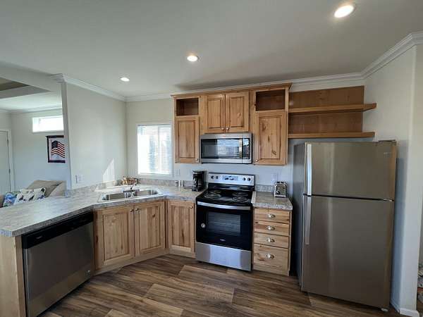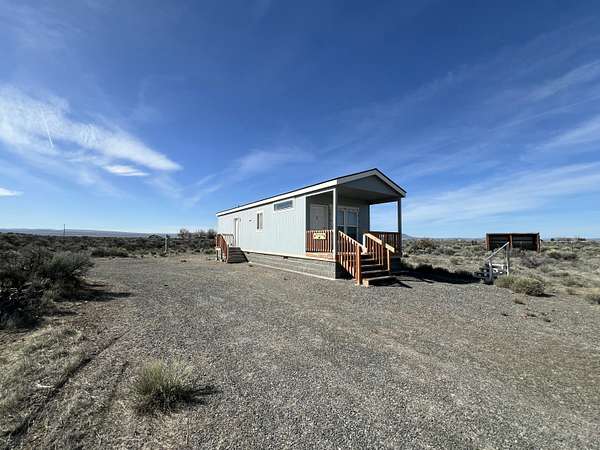 Like new! Welcome to peace and tranquility in this beautiful, nearly new home built in 2021. Located just minutes from all the amenities of Christmas Valley, this well-maintained property offers modern comfort and high desert charm. Inside, you'll find durable laminate flooring throughout, crown molding and a spacious kitchen with ample cabinet space--perfect for everyday living or entertaining. Relax on the cozy front porch as you take in breathtaking sunsets, or enjoy sweeping desert mesa views from the bedroom window. Distant mountain vistas add to the serene, open feel of this picturesque setting. The property offers a fully fenced area ready for livestock, making it ideal for hobby farmers or those seeking a rural lifestyle. The home is also built on stem wall foundation and has never been moved from the original site, qualifying the home for a range of financing options. All this, while still being conveniently close to town, shopping, dining, and the gas station.