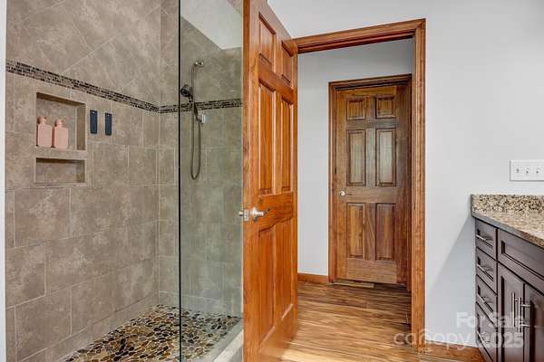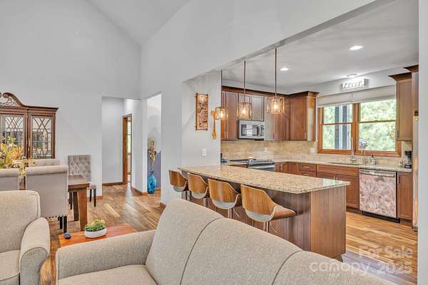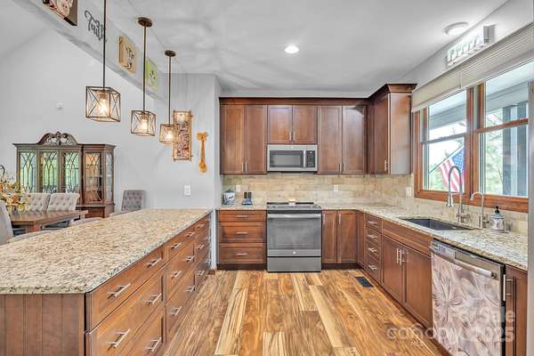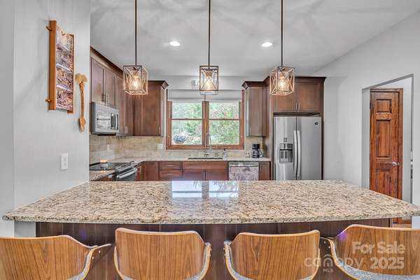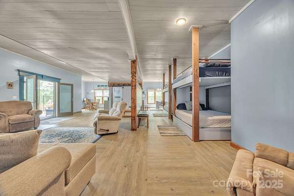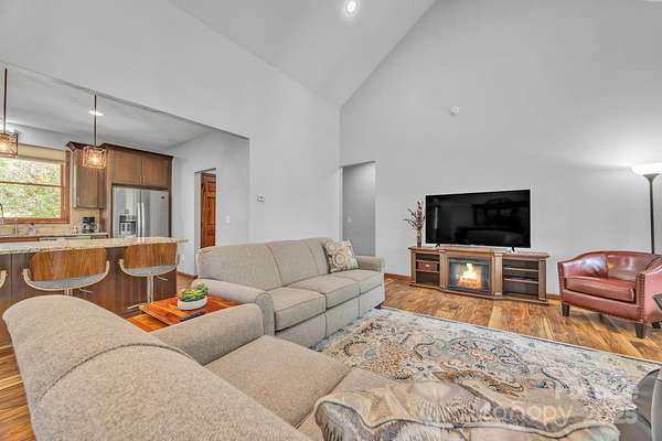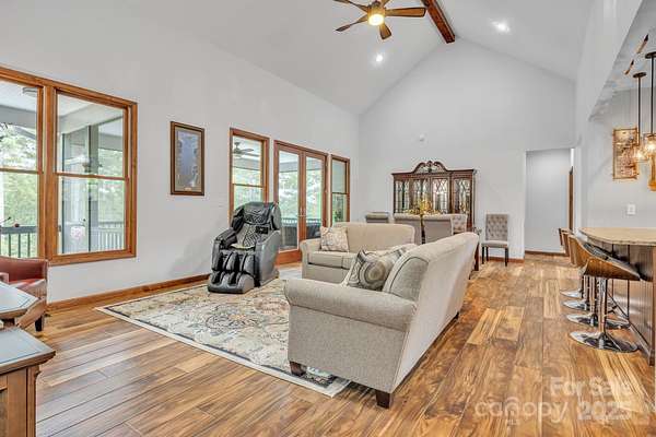 Make an Offer! Motivated Seller! Imagine waking up each morning to the sparkling waters of Lake Rhodhiss, surrounded by 3 ACRES of privacy. This is truly the quietest & most PEACEFUL lake setting you'll find amongst all the local lakes in the area. Welcome to "Grey Hunter Lodge"--your NC lake escape, designed for entertaining, relaxing, and creating lifelong memories, located in The Waterfront Club, the most sought-after subdivision at Lake Rhodhiss. Step inside and feel the warmth the moment you walk through the door. With the open floor plan and vaulted ceilings, this home has all the character you've been looking for. The partially finished basement offers a second living space, complete with a kitchenette and full bath, plus custom-built bunk beds that make hosting fun and effortless. In total, the home comfortably sleeps up to 14. Entertain by your salt-water pool or take your golf cart on the freshly-paved walkway to the lake and your personal floating dock. There's no need for a retaining wall, allowing for your very own beach area. Unlike other area lakes with clay bottoms, Lake Rhodhiss is known for its sandy bottom. Sellers have enjoyed the peace and serenity of this quiet part of the lake. The Waterfront Club is golf cart-friendly and is popular for its amenities, to include 4 parks with breathtaking views of Grandfather Mountain, Table Rock and South Mountain. The Stafford Creek trail runs throughout the entire 3,000+ acre subdivision. This is not just a home on the lake; it's acreage with everything you want and need for peace and serenity. Welcome to lake living in beautiful NC.