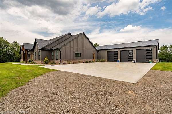 Stunning new home offering over 3,000 sq ft of living space on 3.5 acres in Huntington, Arkansas. This beautifully designed property features a spacious 60x40 three-car garage with an attached 480 sq ft apartment, perfect for a guest house, mother-in-law suite, or private retreat for a teenager. This beauty boasts a large, open kitchen with high-end custom cabinetry, ideal for both daily living and entertaining. Each of the three bedrooms includes its own en-suite bathroom, providing comfort and privacy for everyone. The master suite is generously sized and includes a well-appointed bathroom and a spacious walk-in closet. The oversized laundry room offers ample space and functionality. Outdoor living is just as impressive, with two large patios perfect for relaxing or hosting gatherings. Located just 10 minutes from Greenwood, this property blends country living with convenience--truly a must-see!