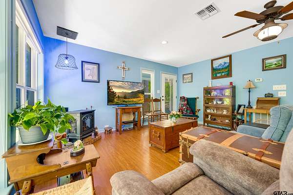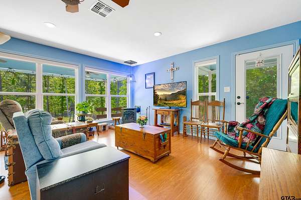 Welcome to easy country living on 29.9 picturesque acres in East Texas, just minutes from historic Palestine. A long, private driveway leads you to this charming, well maintained 1,059 sq. ft. cottage, built in 2017 and thoughtfully designed for comfort and simplicity. Inside, a light-filled open-concept living, dining, and kitchen area is enhanced by windows spanning two walls, bringing the beauty of the outdoors in. Step outside to relax on the cozy screened porch or covered back patio, both overlooking a tranquil pond surrounded by mature trees—an ideal setting for peaceful mornings and quiet evenings. The land features level pasture perfect for horses or cattle, complemented by scattered trees that add character and shade. With a one-car carport and additional adjoining acreage available for sale in separate listing, this property offers both immediate enjoyment and future potential in a serene, private setting. Schedule your appointment today.