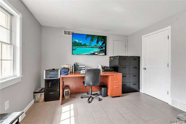 - Bath In Primary Bedroom, Bedroom On Main Level, Breakfast Bar, Cathedral Ceilings, Eat In Kitchen, Entrance Foyer, Home Office, Natural Woodwork, Pull Down Attic Stairs, Quartz Counters, Separate Formal Dining Room, Separate Formal Living Room, Sliding Glass Doors