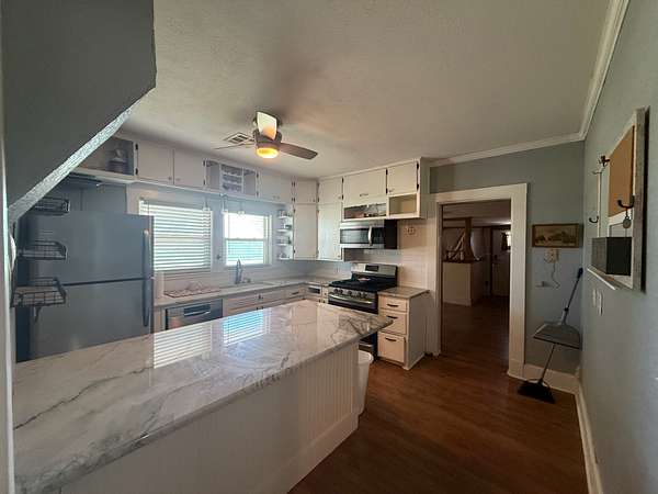 Trees,Updated Kitchen: Granite Countertops, Fridge/Dishwasher/Gas Oven Laminate Floor/ Wine