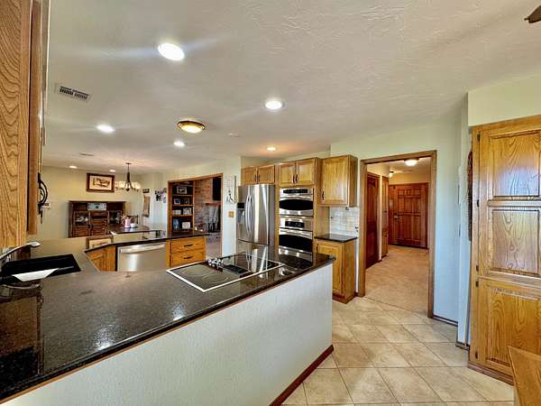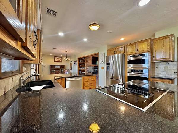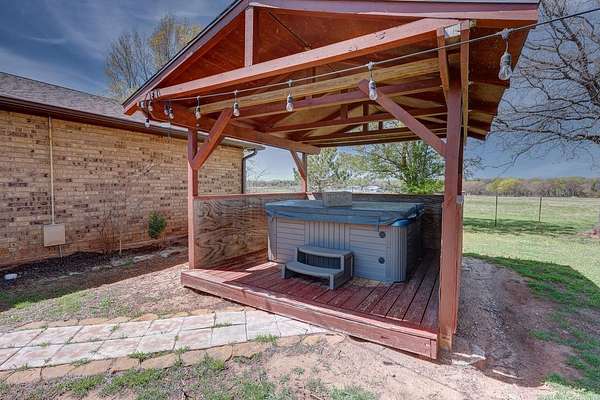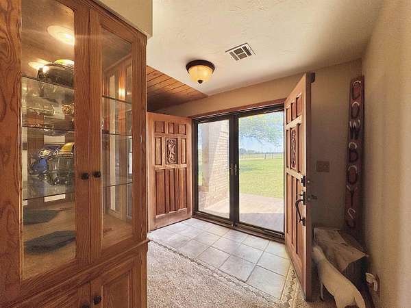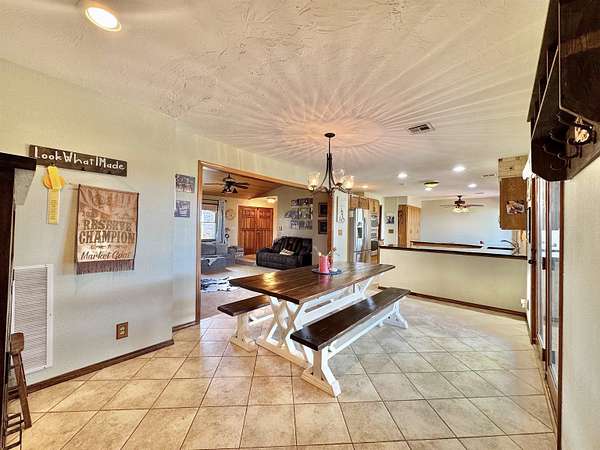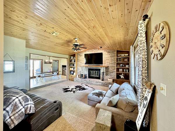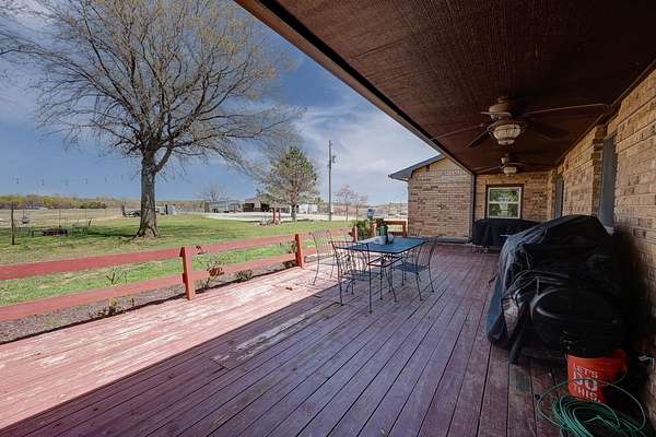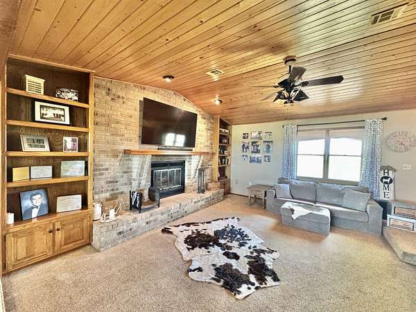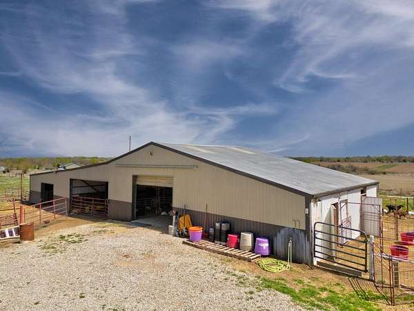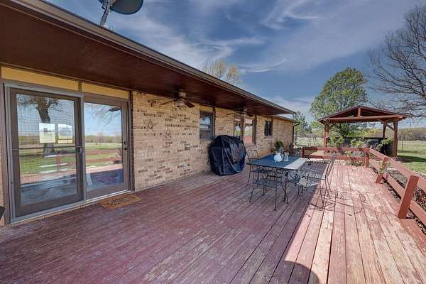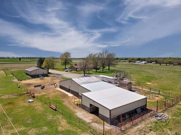 Animal Lover's Dream! Custom Brick Ranch on 23.6 Acres Welcome home to your country retreat! This custom-built, all-brick ranch sits on 23.6 acres of fully fenced, livestock-ready land, designed for peaceful living with all the modern comforts. Whether you raise horses, cattle, goats, or simply want open skies and quiet mornings, this property is a rare find. Step inside to a bright, open living room with a soaring vaulted tongue-and-groove wood ceiling, cozy wood-burning fireplace, and built-ins that make the space both inviting and functional. The spacious dining area flows easily into the updated kitchen, featuring granite countertops, a tile backsplash, and premium GE Profile appliances including an Avantium 4-in-1 oven and convection oven-perfect for the home chef. Enjoy your morning coffee in the sunny breakfast nook overlooking the pasture, or step out onto the back deck to watch your animals roam. The private master suite offers dual walk-in closets and a beautifully updated bathroom with double sinks. Two additional bedrooms and a refreshed hall bath (2019) provide comfort and space for family or guests. Need flexibility? The bonus room off the kitchen-complete with mini-splits for heating and cooling-offers the perfect spot for a home office, craft room, or gym. There's also a 4x6 Ground Zero safe room for peace of mind, and a large mudroom/laundry area with a wash sink and extra storage. Outdoors, the setup is a dream for animal lovers and hobby farmers alike: 44x30 insulated shop (built in 2013) with a 14x30 climate-controlled area, roughed-in plumbing for a bathroom, and two-zone radiant floor heat ready for hookup. 30x30 metal barn with multiple lean-tos, stalls, and hay/equipment storage. 8x12 tack shed, lined with cedar, fully lit inside and out. The lush pastureland is fenced and ready, offering room to roam, ride, and relax. With breathtaking sunsets and quiet country views, this is a turn-key ranch property you won't want to miss. Call today to schedule your private showing!