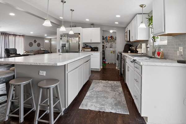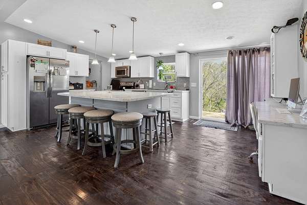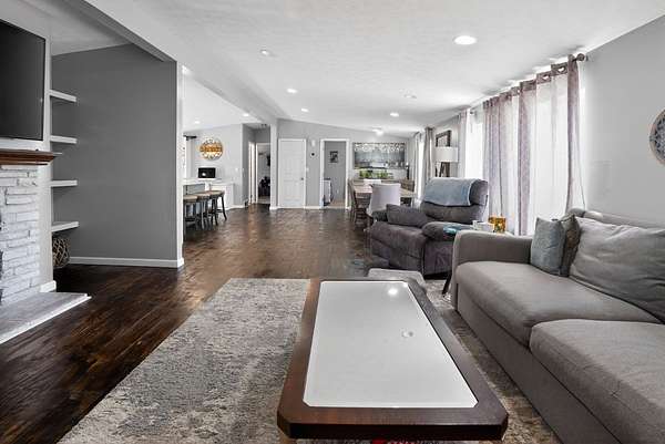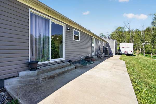 This single family home in Martins Ferry, Ohio offers 1,900 square feet of living space on a 7.5-acre lot. Built in 2002, this one-story property features 3 bedrooms and 2 bathrooms. The home includes a large unfinished basement with a lifetime waterproofing system, three sump pumps, and plenty of storage. Major systems have been updated, including an electric HVAC with a heat pump and furnace backup, a newer electric water heater, and updated plumbing and electric. The kitchen, bathrooms, and all interior walls have been renovated, and the home has new patios in both the front and back. The property is all electric, with no gas service in use. Laundry is on the main floor for convenience. The attached 4-car garage offers ample parking and storage, and the living room features a working fireplace. The home is on city water and a septic system, and all utilities are active. Windows are functional and could be updated for efficiency. There is no HOA or additional fees. The property is move-in ready and in excellent condition, with an open layout and great views of the city. Desirable features include a large lot, updated systems, new patios, a 4-car garage, and a fireplace in the living room.