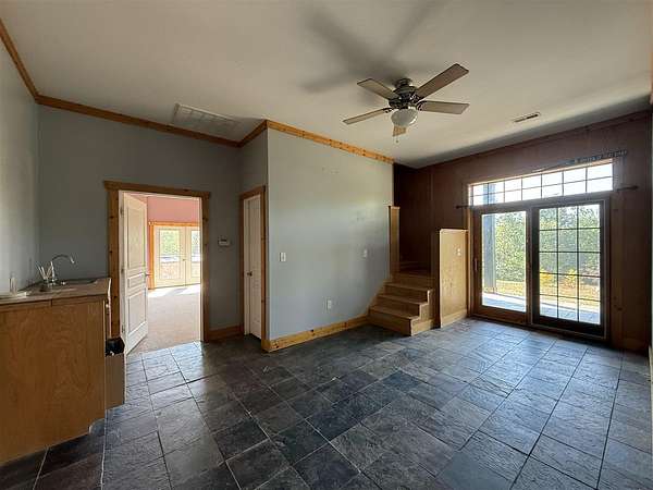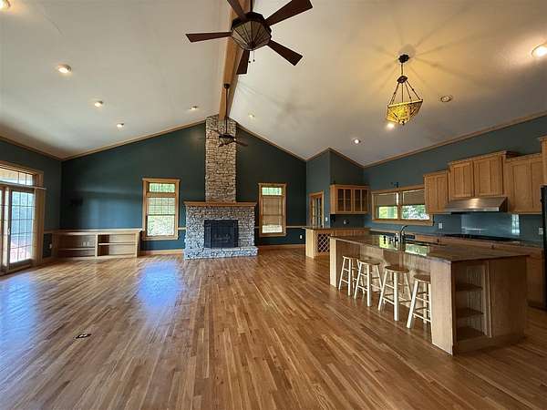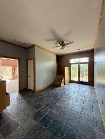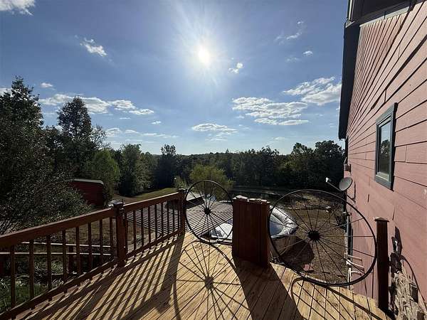 Stunning views from the decks! 2 Stocked Ponds on 8 AC! Secluded, less than 5 miles to the parkway and 231. Master bedroom on the main level w/fire place and direct access to the deck. Open floor plan with a spacious living room, dining room, kitchen area with a fireplace & access to the deck. Utility room has a 1/2 bath & there is washer & dryer hook ups in the attached garage as well. 2 spacious bedrooms in the basement along with a sitting area, a partially finished bonus room and huge family room area that could be used as another bedroom if needed. The home boasts 10' ceilings including in the basement. Tons of room outside for entertaining sitting around the fire pit or fishing in one of the ponds or just taking in the views from either the covered deck or covered patio area. There is an above ground pool and sitting areas around the pool on the decks. There is a 30x24 attached garage and a 20x18 metal detached garage area. The home is being Sold As Is. Call Today to schedule your private viewing.