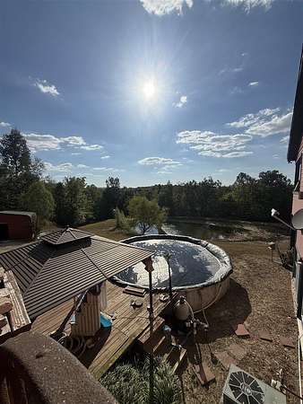 - Covered Deck, Covered Patio, Exterior Lights, Mature Trees, Pond(s), Swimming Pool-Abv Ground, Trees