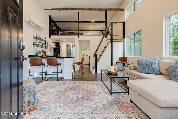 New Construction, Fully Furnished and Everything is Included This may be the retreat you've been searching for, where rustic charm meets modern comfort. This enchanting, brand new home in Beattyville has almost 2 acres, 2 bedrooms, 1 bathroom, a metal roof, and is full of appliances and furniture that remain with the property. Greeted by nice landscaping with a sandstone walkway and a front deck, enter into an open concept main floor that provides loads of natural light. A spacious living room has a sleeper couch and is open to the kitchen, perfect for entertaining guests. Gorgeous granite countertops and a convenient breakfast bar with stools provide a nice spot to dine, and the kitchen offers new white cabinetry, floating shelves, 2-burner electric stove, a microwave, and a fridge. On the main floor, you'll also find one of the bedrooms, a full bathroom, and a stackable washer & dryer. There is a large loft area where you have the second bedroom along with a 2nd fridge and extra living space that can be used as an office or lounging area. Your living space is heated and cooled with a Pioneer Mini-split HVAC and large ceiling fan. Outdoors, you have an inviting back deck that will be a peaceful spot for enjoying fresh air outdoors and watching the deer and other wildlife pass by. With solar lighting, sandstone walkway with solar lighting accents, new railroad tie landscaping, your back deck comes with chairs and an outdoor gas fire pit. You have plenty of parking space with the new gravel driveway which allows parking for up to 6-10 vehicles and RV hookups. Additional features include a tankless water heater and pine log rafters. Utilities include City water, septic system, and underground electricity. Everything stays with the home, including washer and dryer, new sleeper couch, bar stools, 2 refrigerators, 2 queen beds, 3 TVs, work desk and so much more. This home combines the tranquility of country living with the convenience of nearby city amenities. Just minutes to Red River Gorge in the town of Beattyville KY. Near Daniel Boone National Forest, rock climbing, hiking, boating and fishing. Plenty of deer and other wildlife on the property. Grocery store, Dollar General and gas station 1.6 miles away. Local hardware and building supply warehouse is just 1.7 miles away. Don't miss out on your opportunity to turn this house into your home, where every day feels like a getaway!