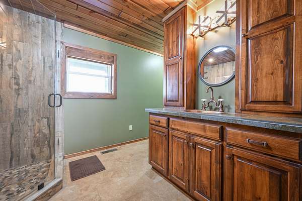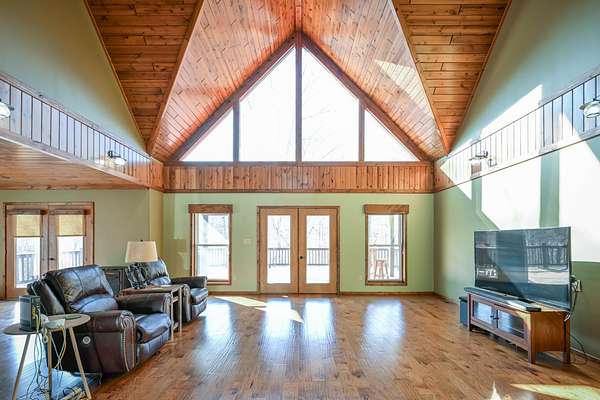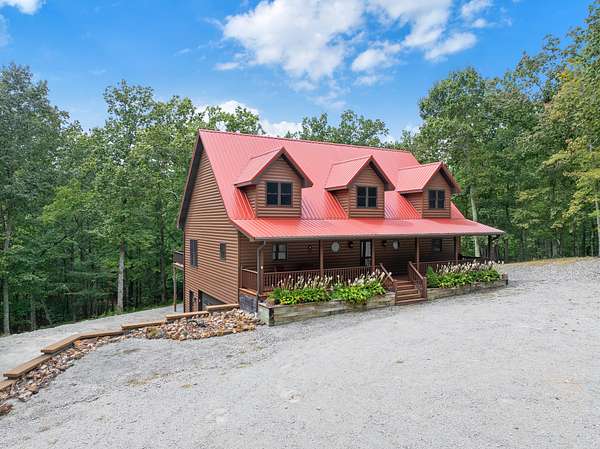 Move In Ready & Motivated Sellers! Discover your dream retreat in the exclusive Ponderosa Resort! This 2-bed, 3.5-bath home offers private membership access to 1,500 acres of ATV/hiking trails, Bass Lake, a pool/clubhouse, a private marina, and the TN River. Custom woodwork and nature-inspired tones create a warm, rustic feel. The open-concept kitchen features a walk-in pantry and large breakfast area. This home has two flex spaces which could be an office, game room. Expansive windows showcase breathtaking views. Enjoy a covered deck perched among the treetops, leading to a climate-controlled clubhouse with a loft bed. The lower level boasts a rec room with a wet bar, full bath, safe room, workshop, and garage with pegboard walls. Low maintenance upgrades include Timberline Insulated Vinyl Siding, a metal roof, spray foam insulation, PEX plumbing, and a Generac generator. Sturdy constructed with 6" Walls. Call today for details!