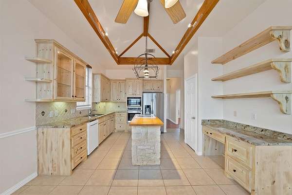 - Eat-In Kitchen, Flat Screen Wiring, Granite Counters, High Speed Internet Available, In-Law Suite Floorplan, Kitchen Island, Natural Woodwork, Second Primary Bedroom, Vaulted Ceiling(s)
